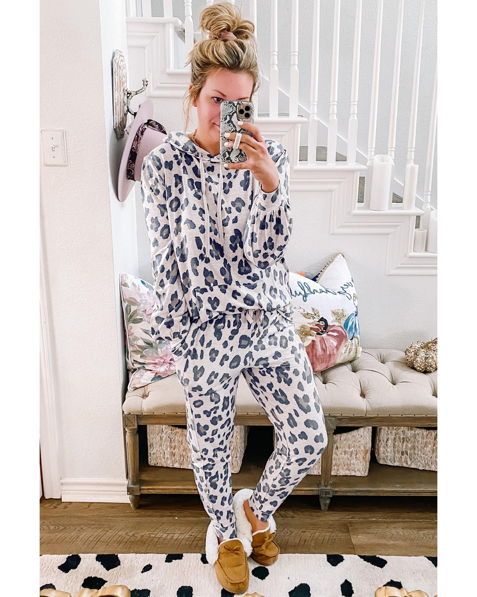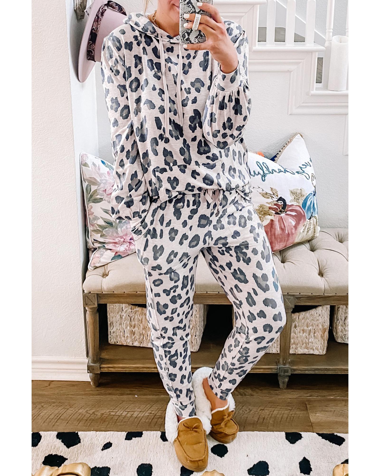 Khaki Leopard Print Drawstring Hoodie and Skinny Pants Lounge Set – XL