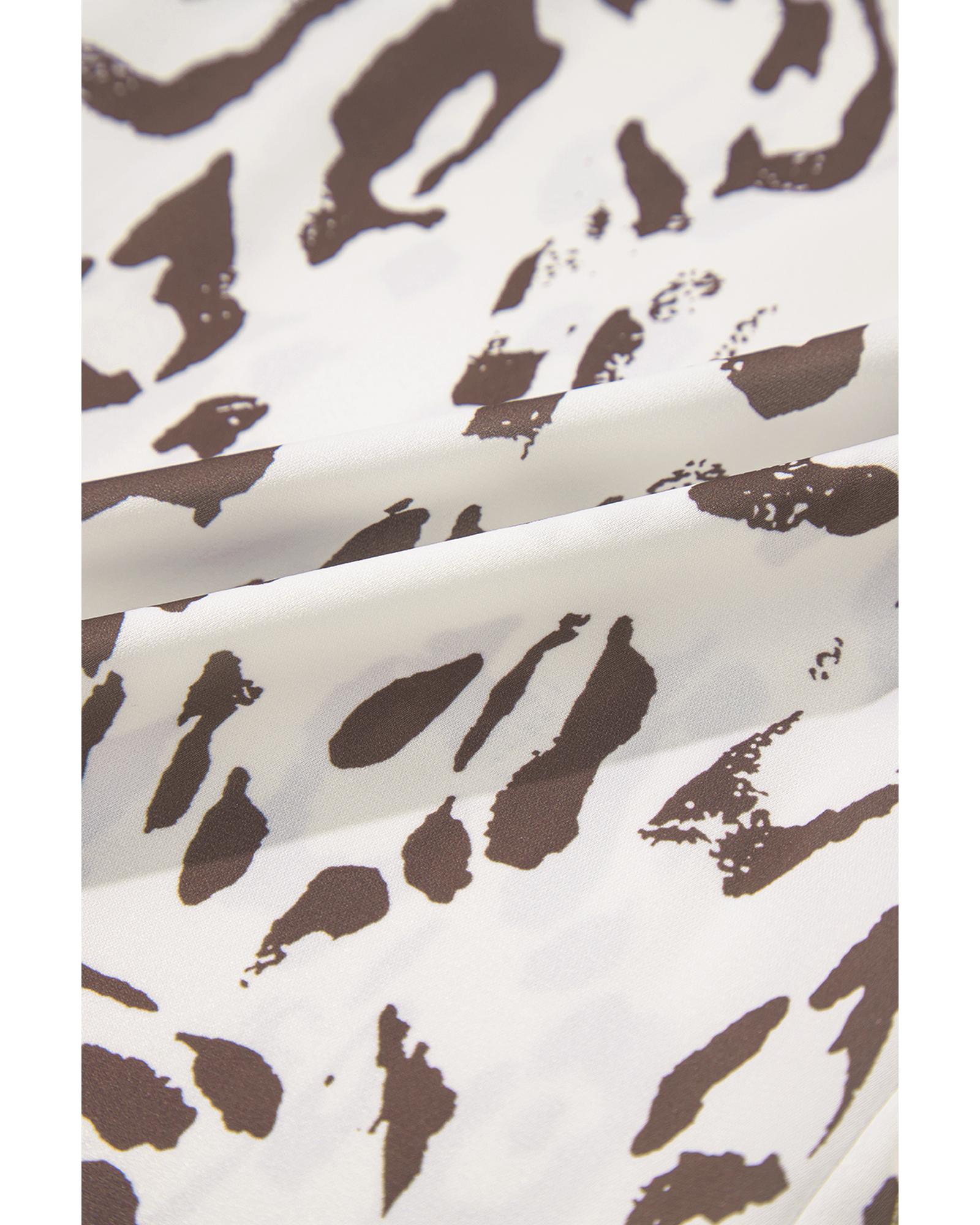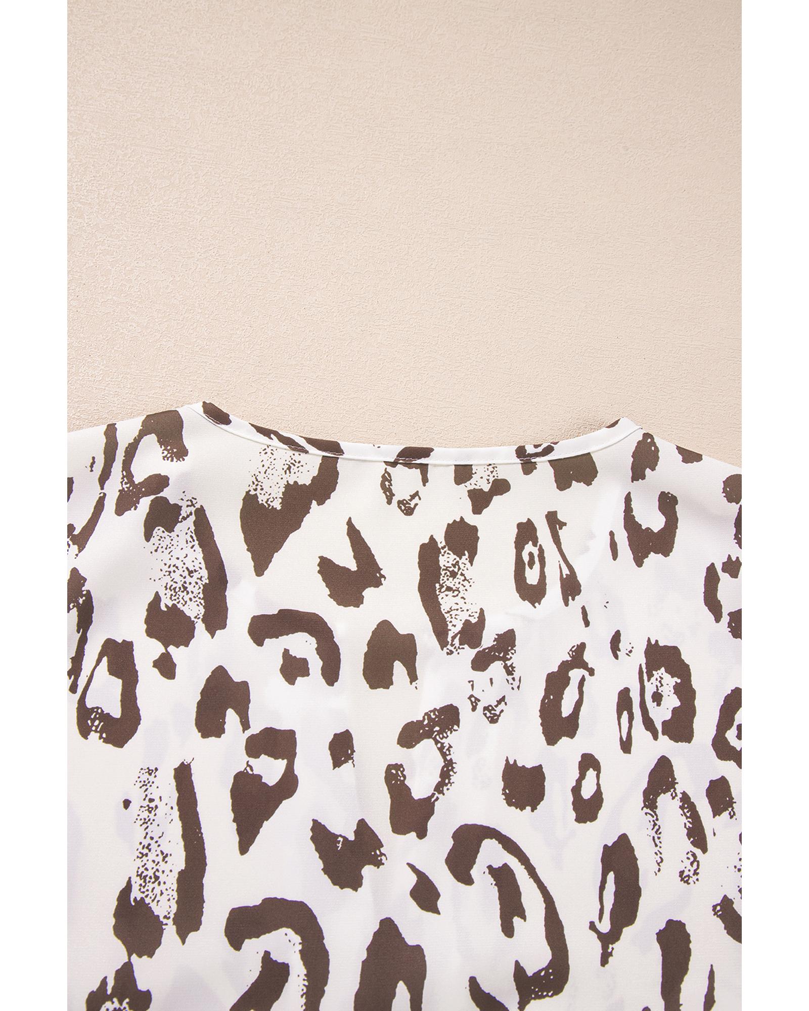 Khaki Leopard Print Split Neck Balloon Sleeve Blouse – XL