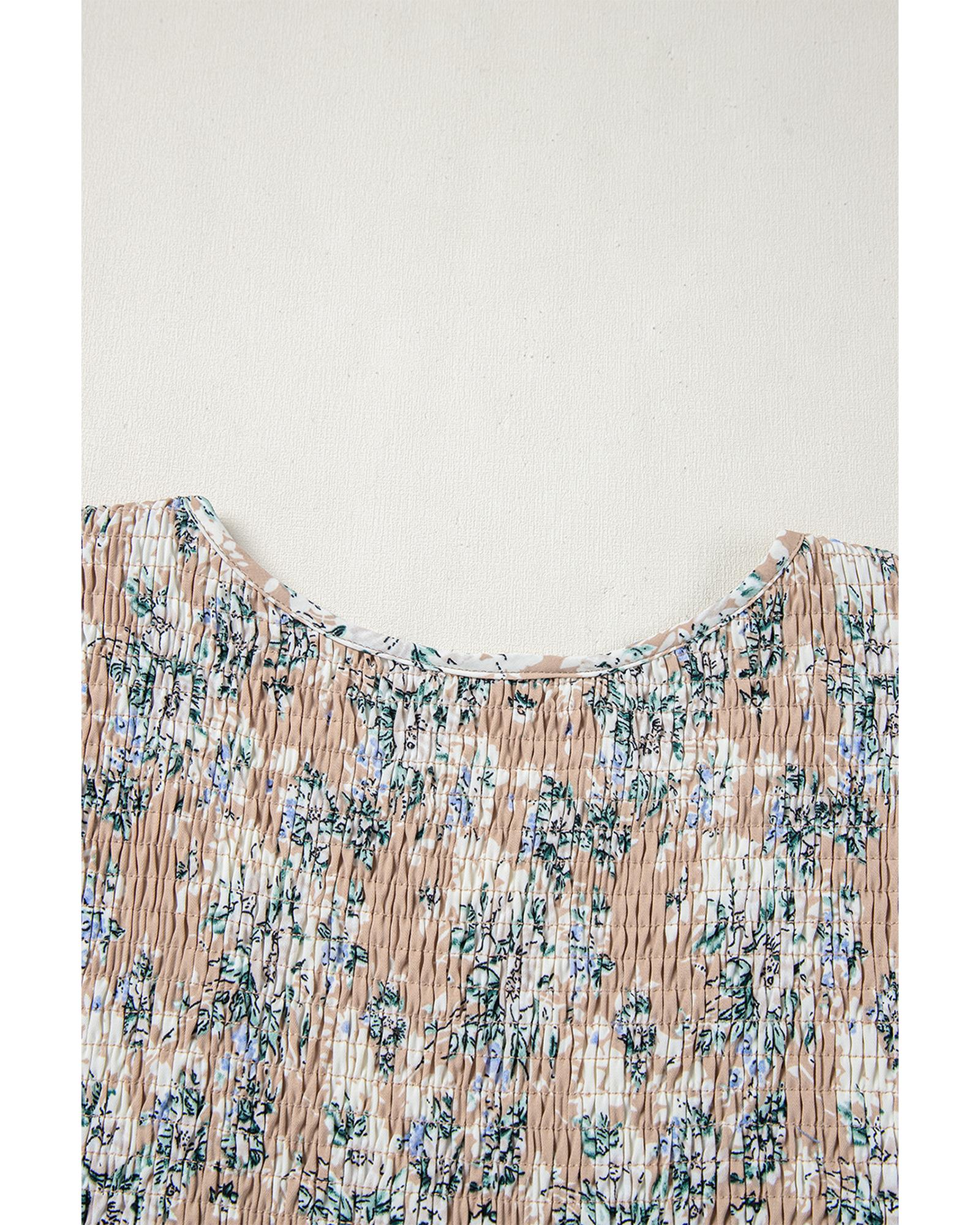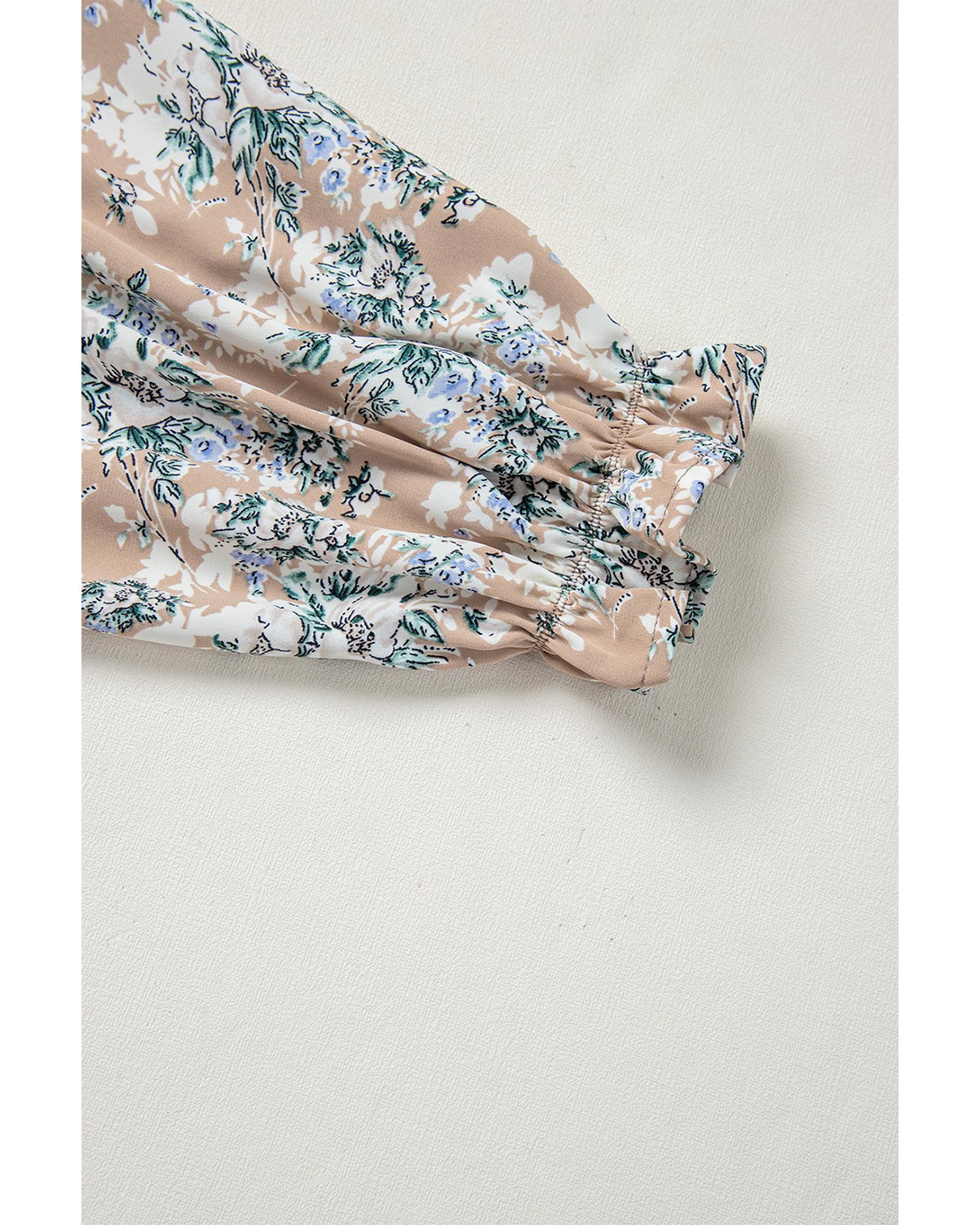- Khaki Maple Grove Floral Smocked Puff Sleeve Long Dress
