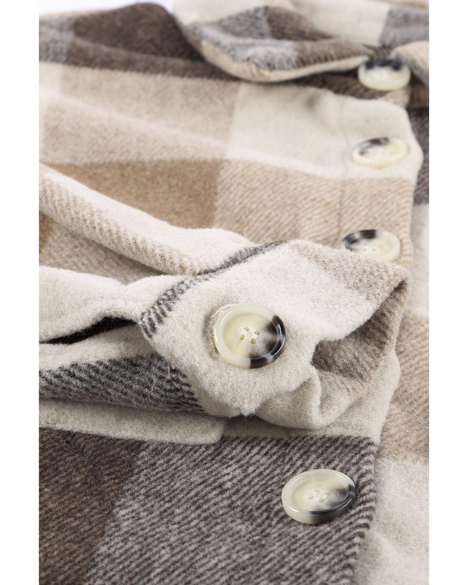 Khaki Plaid Color Block Buttoned Long Sleeve Jacket with Pocket – S