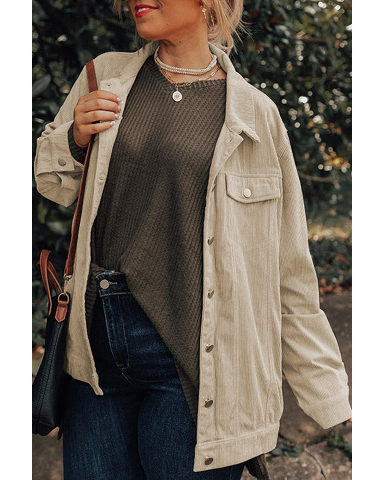 Khaki Plus Size Crochet Pattern Back Corduroy Jacket – 1X