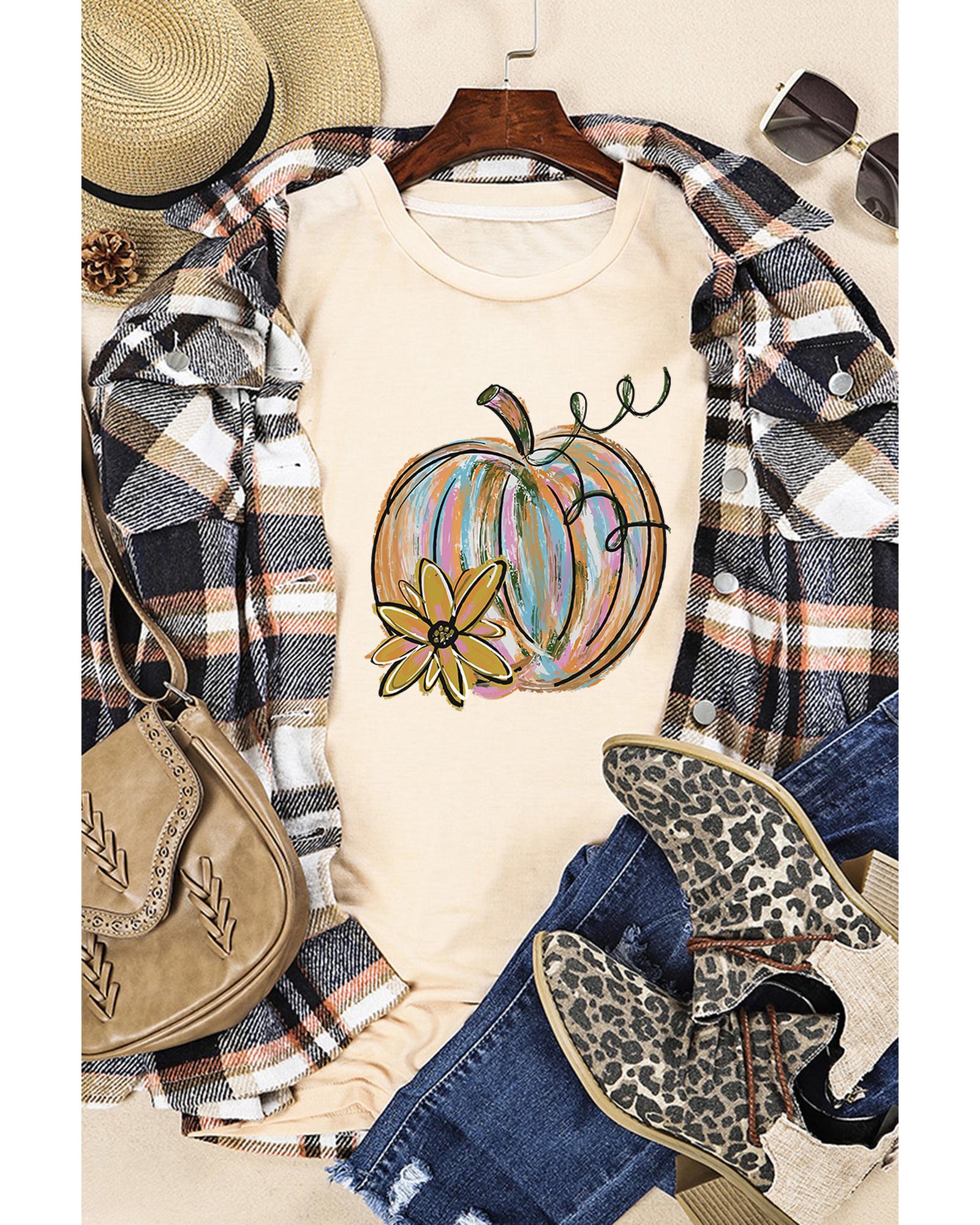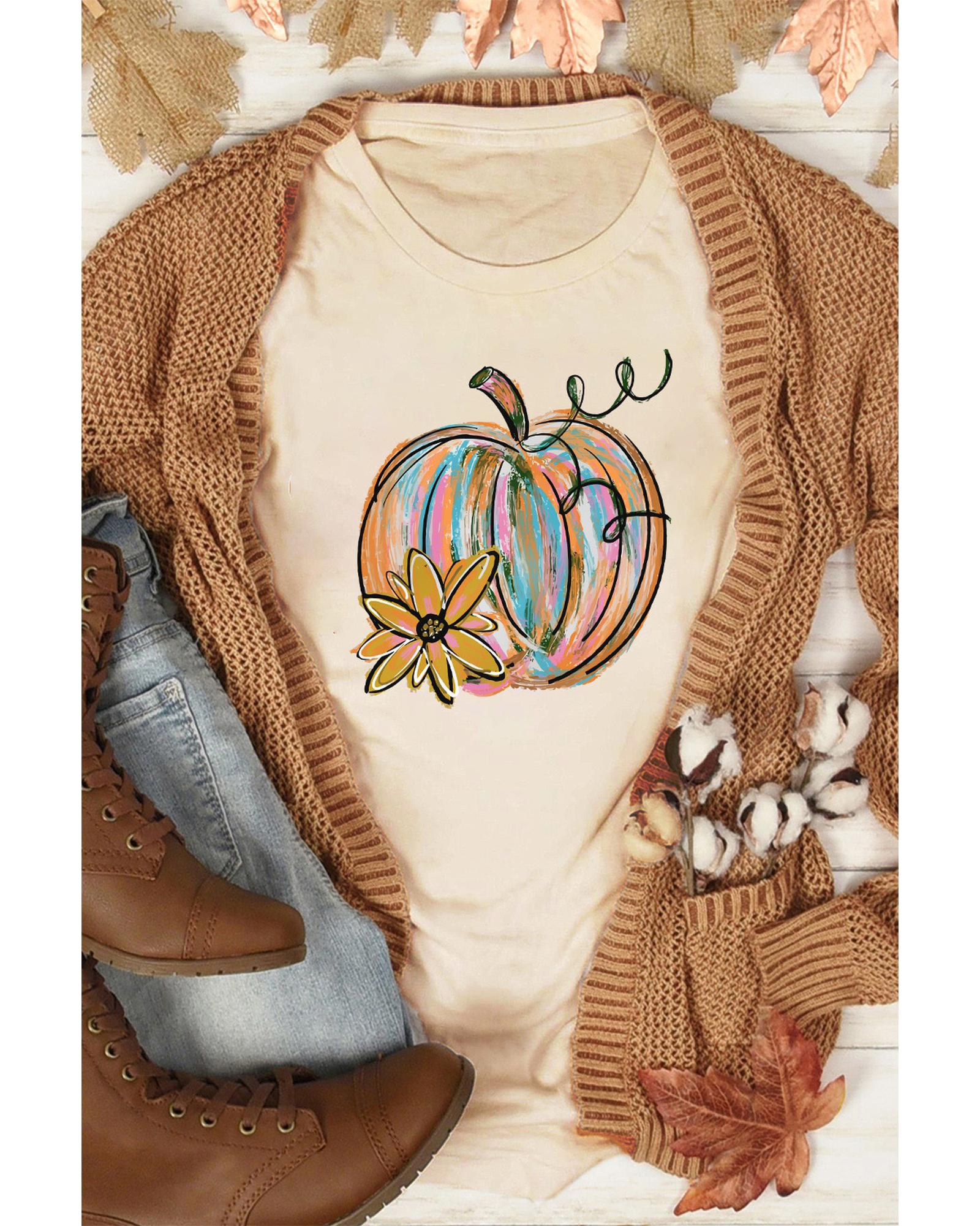 Stylish and trendy Khaki Pumpkin with Flower Graphic T - Shirt Unique pumpkin flower graphic print on the front Short sleeves for comfort and breathability Available in multiple sizes for a perfect fit Made from high