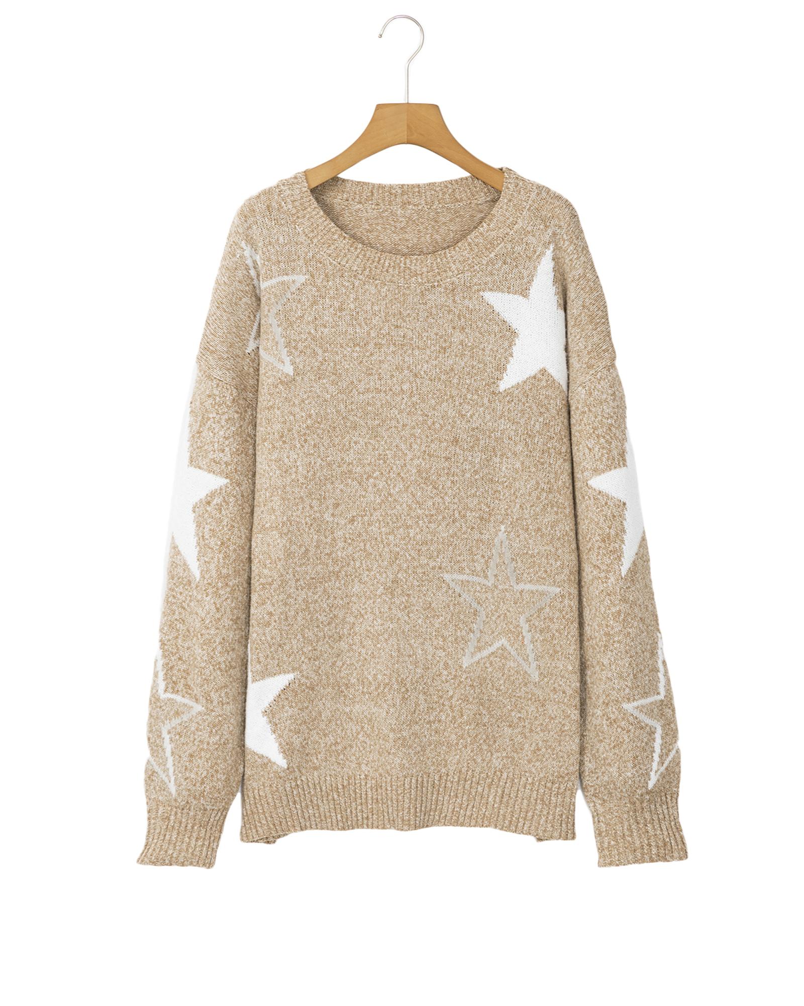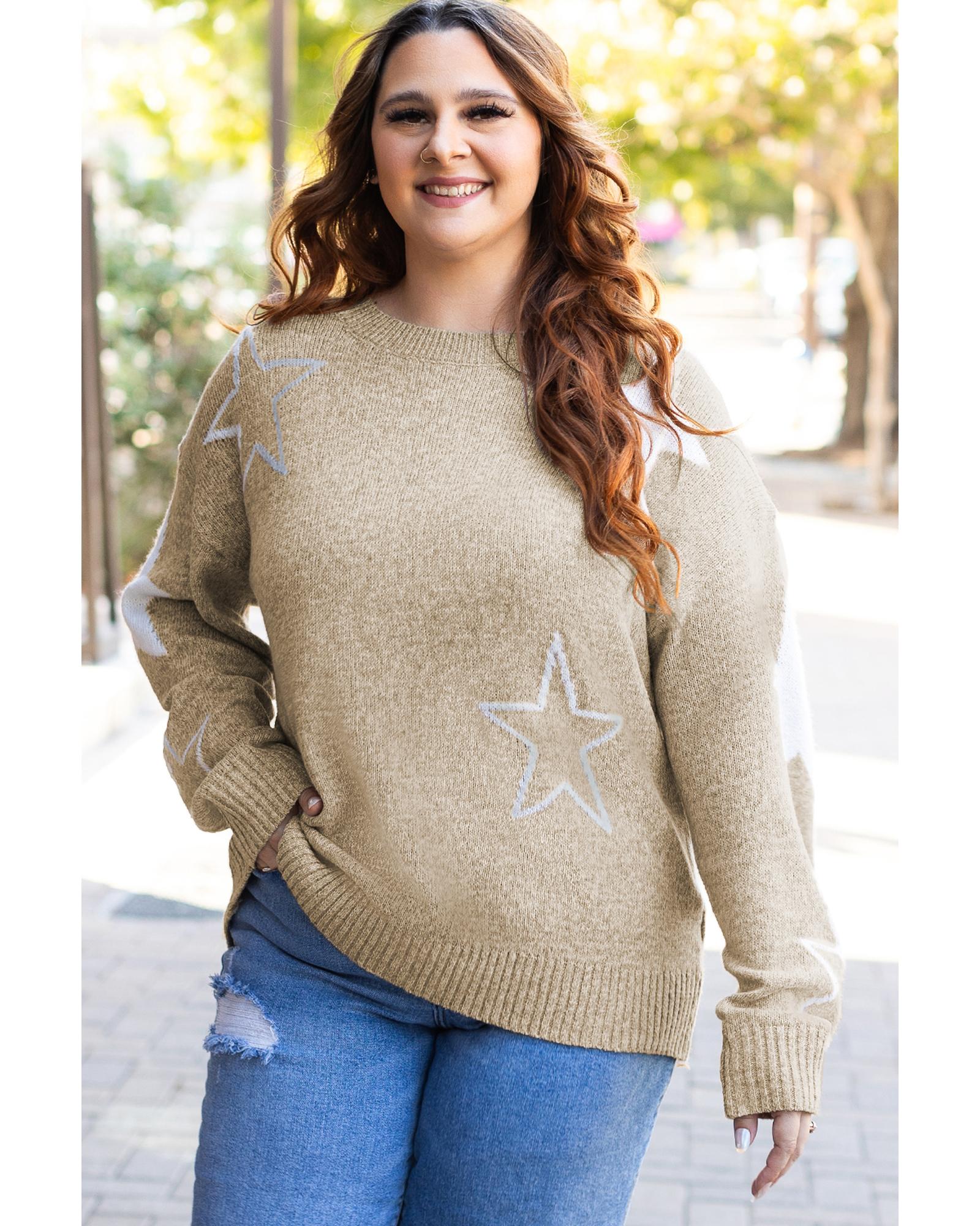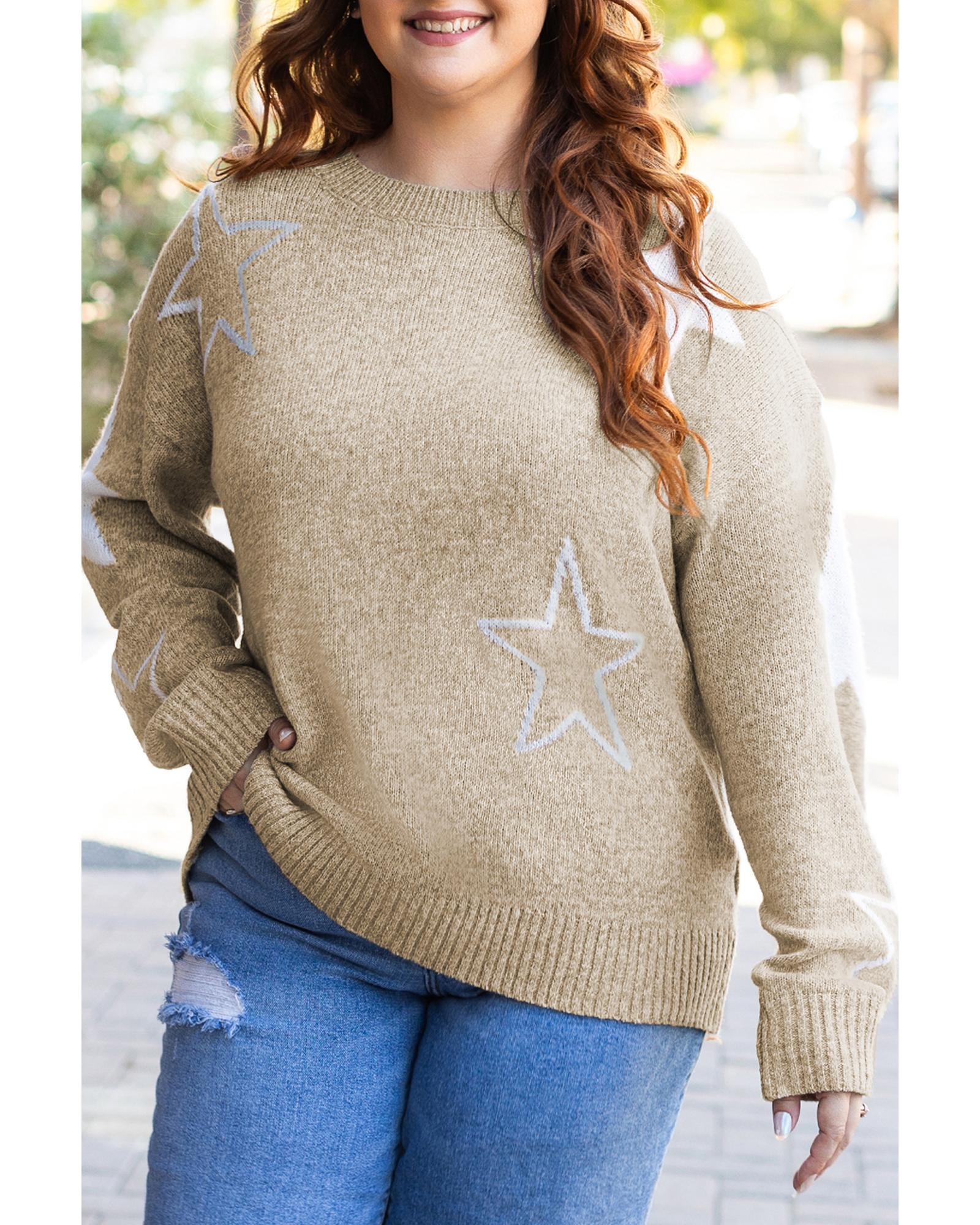 Khaki Star Pattern Drop Shoulder Plus Size Sweater – 1X