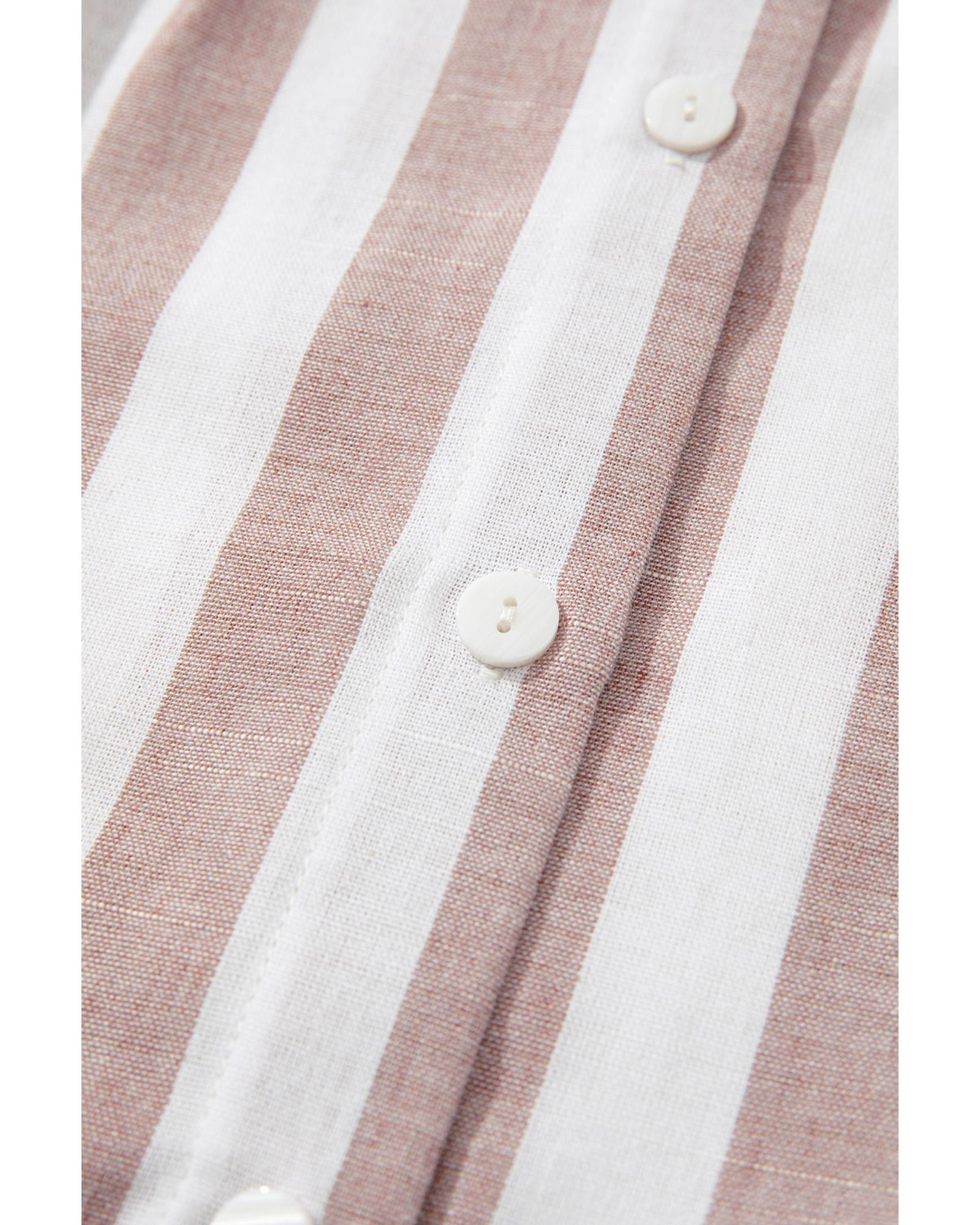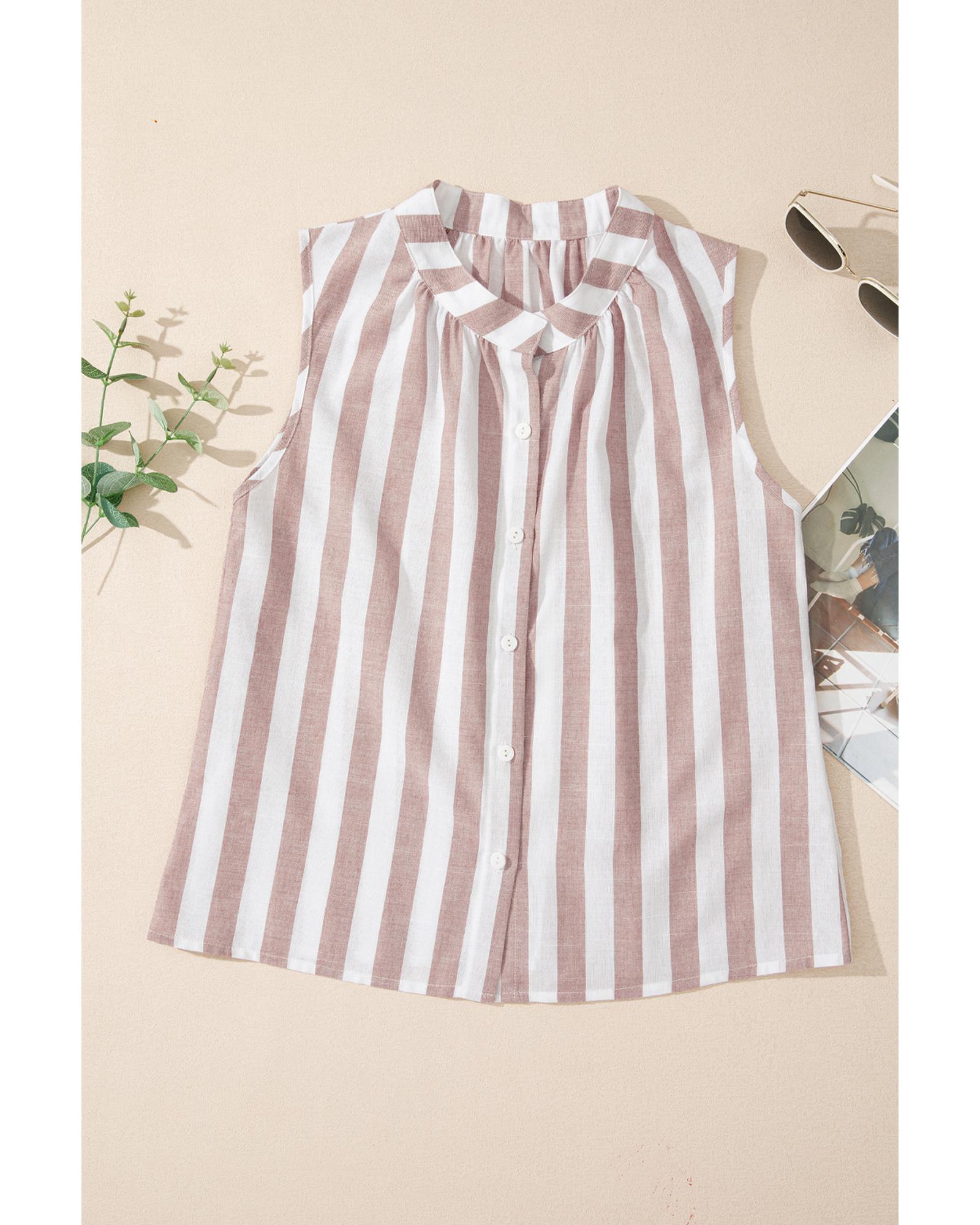 Khaki Stripe Casual Button Down Sleeveless Shirt – L