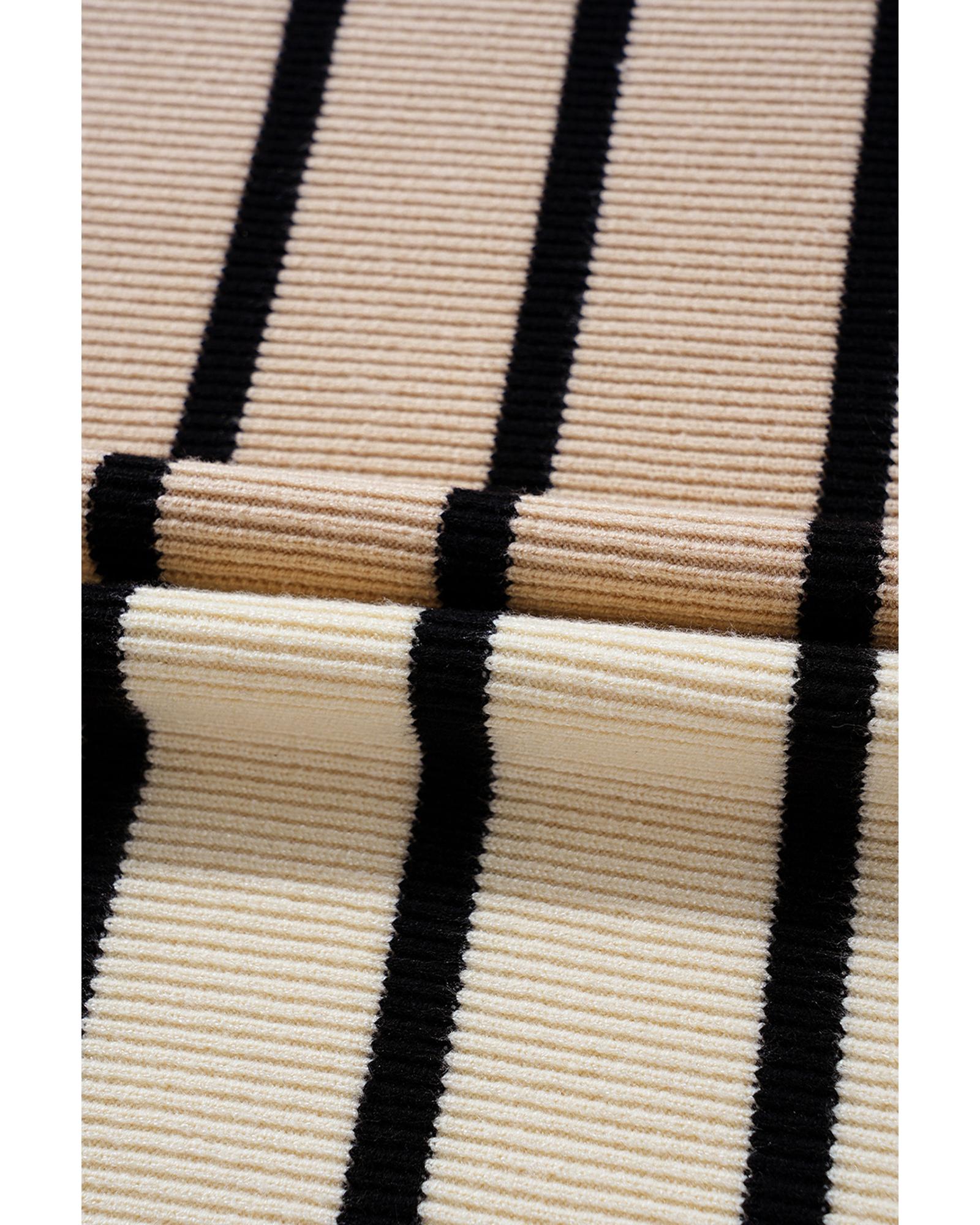 Khaki Stripe Color Block Quarter Zip Collar Short Sleeve Sweater Dress – XL