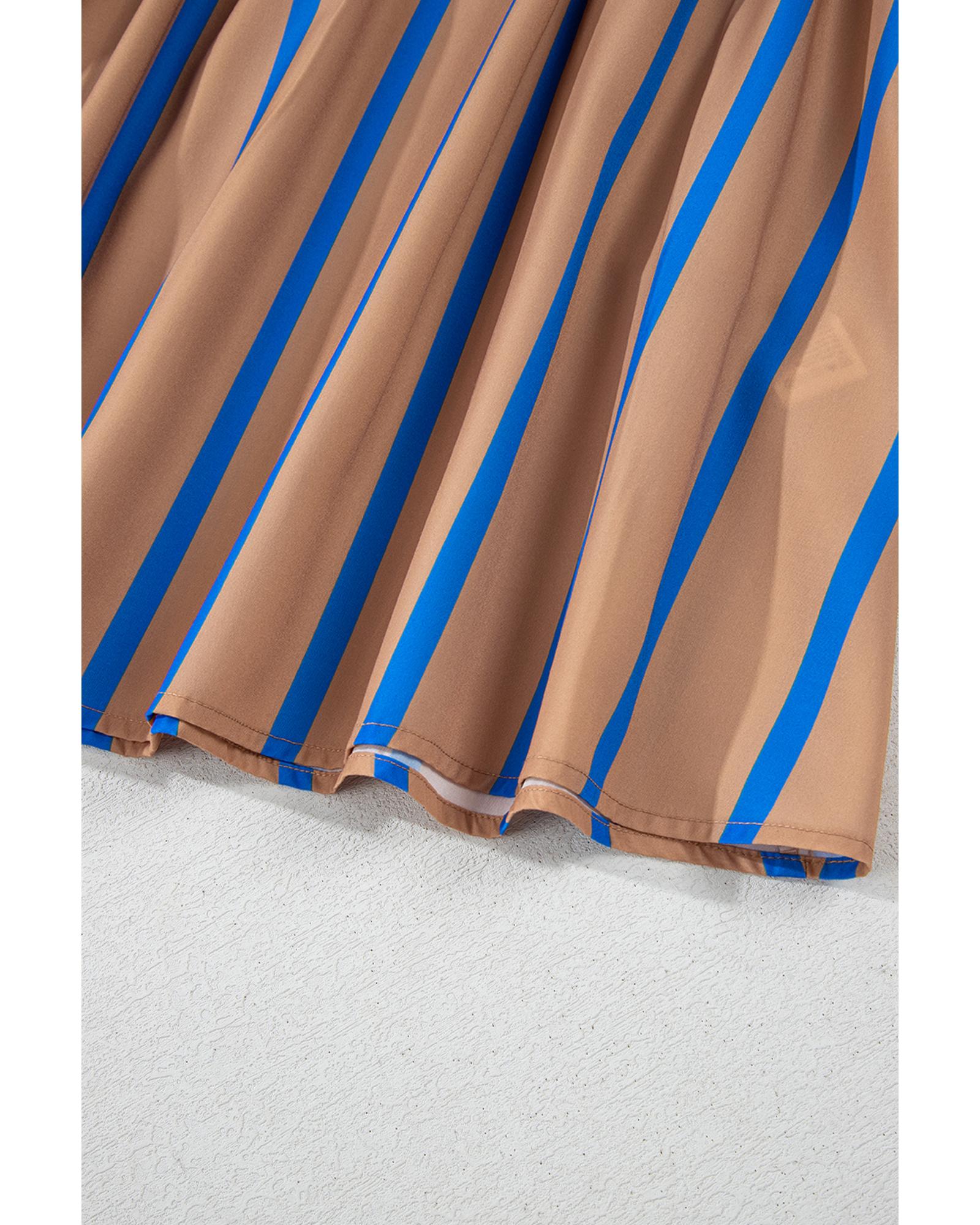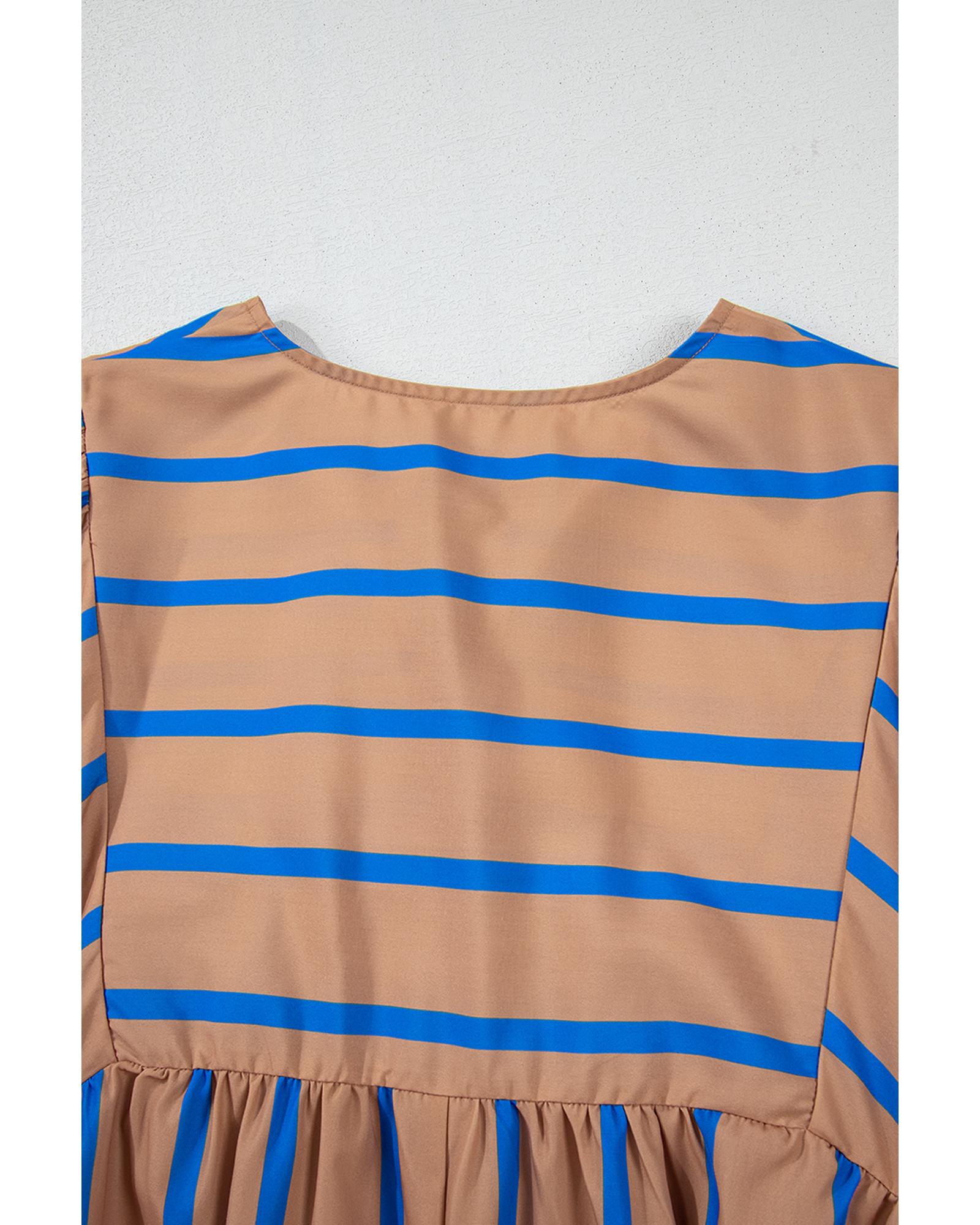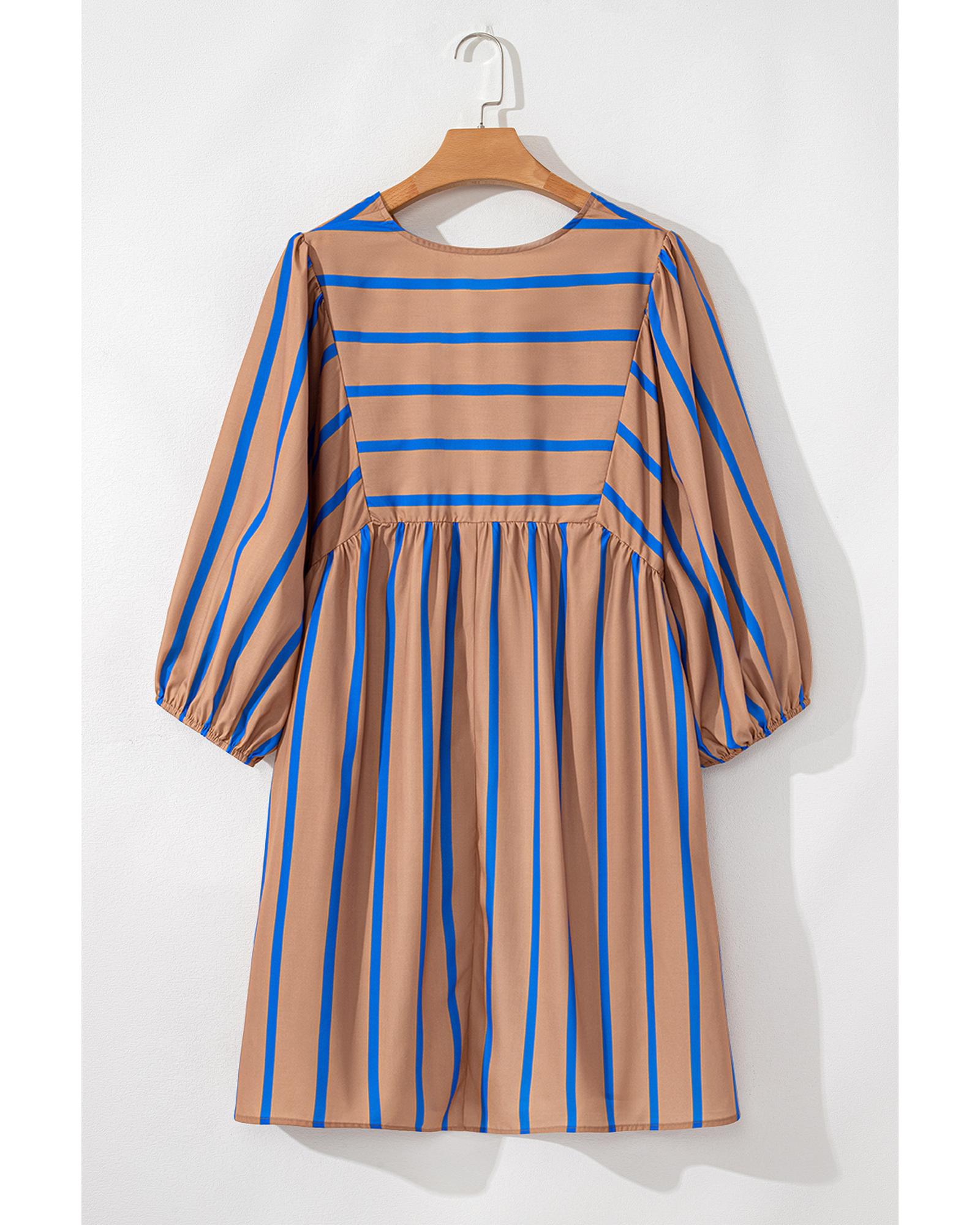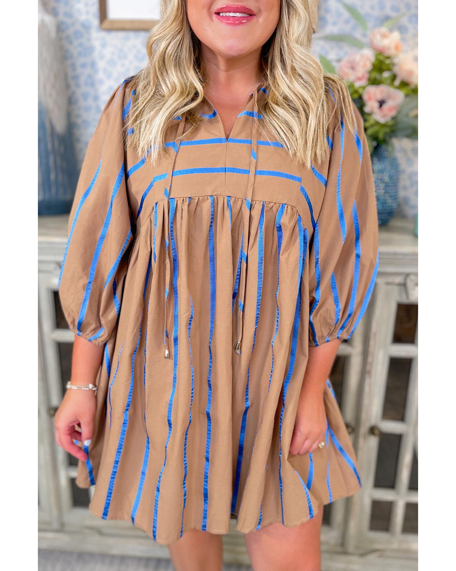 Khaki Stripe Contrast Striped Print 3/4 Sleeve Babydoll Plus Size Dress - 3X Original price was: $68.99.Current price is: $36.99.