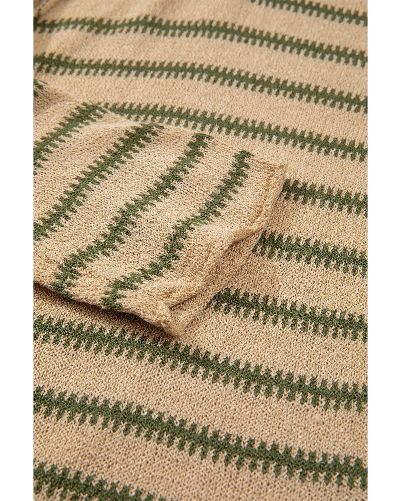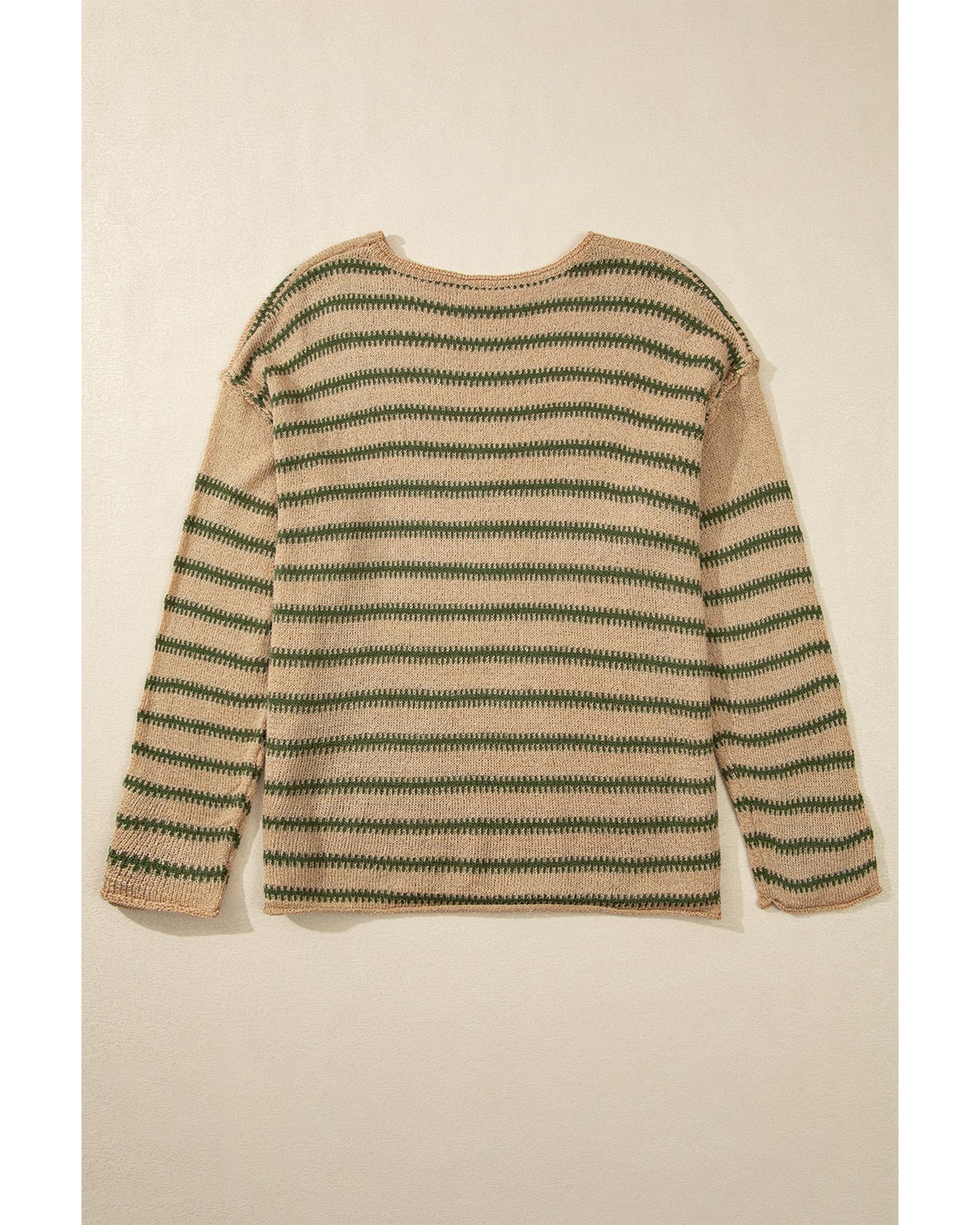 Khaki Stripe Drop Shoulder Casual Sweater – XL