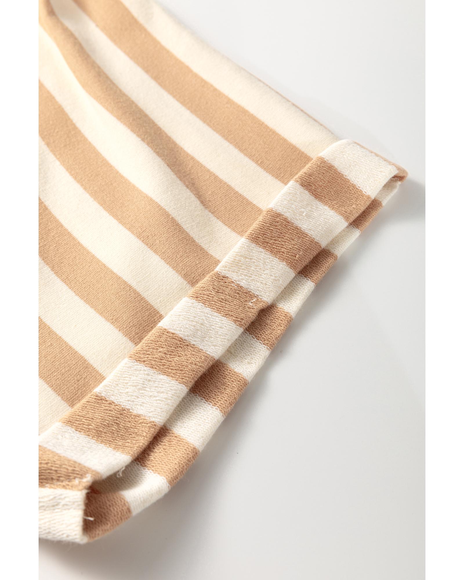 Khaki Stripe Two-in-one Collared Cap Sleeve Patchwork Loose Mini Dress – XL