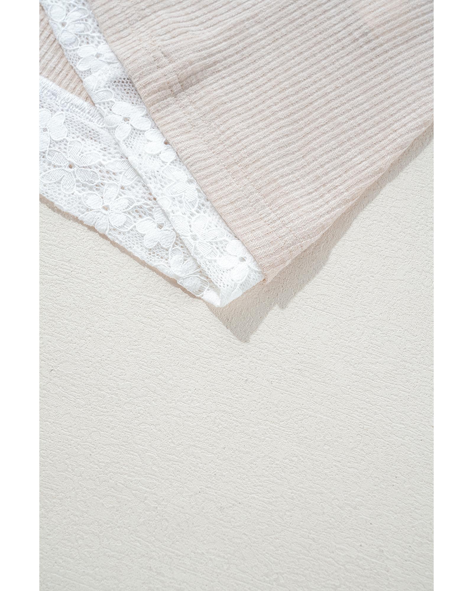 Khaki V Neck Floral Peace Sign Graphic Lace Patch Ribbed Plus Size Hooded Top – 2X