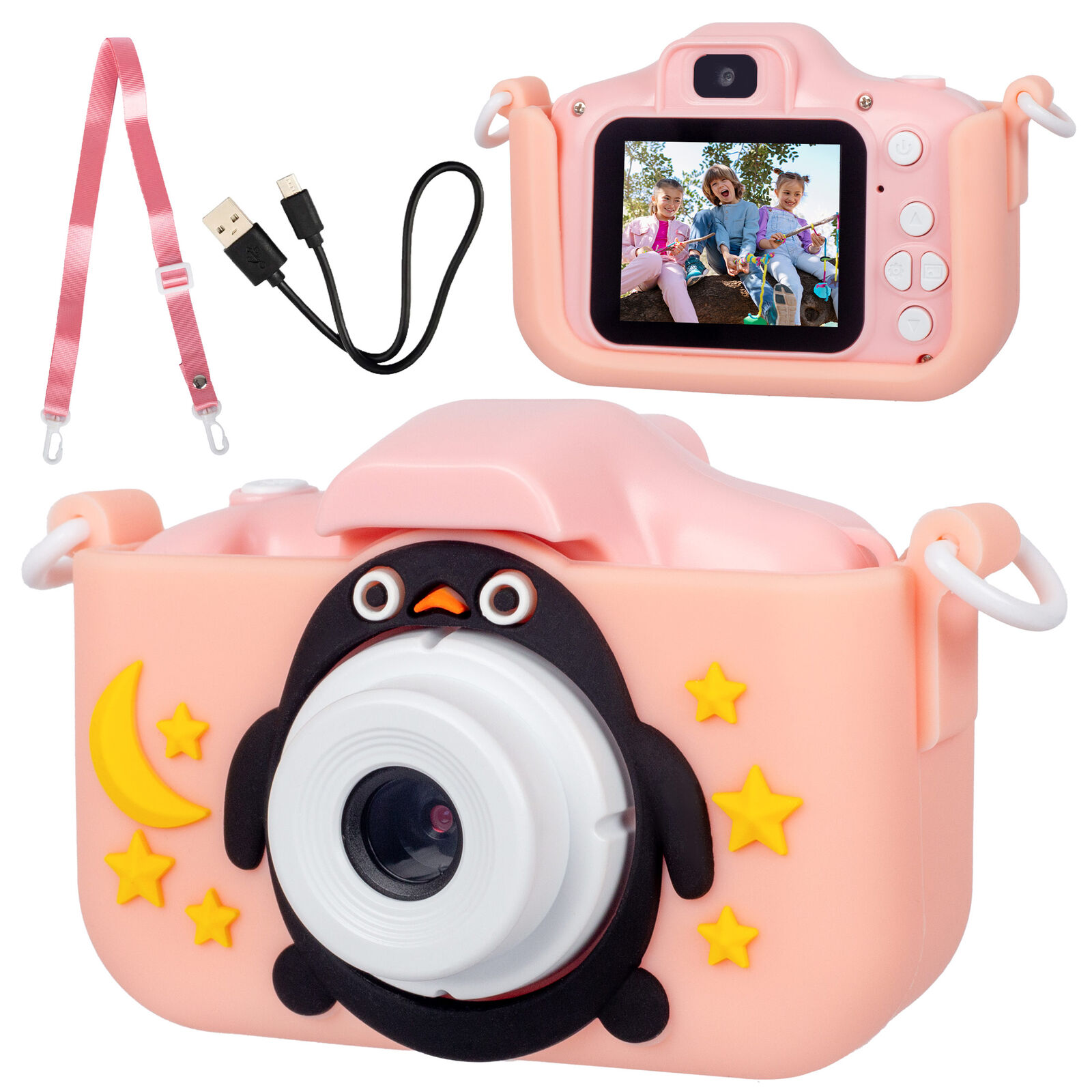 Kids Digital Dual Lens Camera, 4x Zoom and HD Video Recording (Pink)