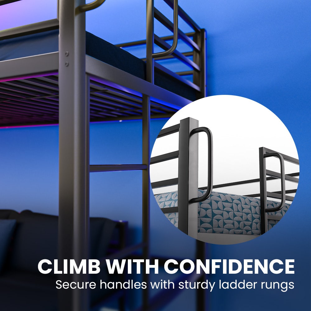 KINGSTON SLUMBER Single Loft Bed And Double Underbed, Multifunctional, Space Saving with Fixed Ladder, Matte Dark Grey