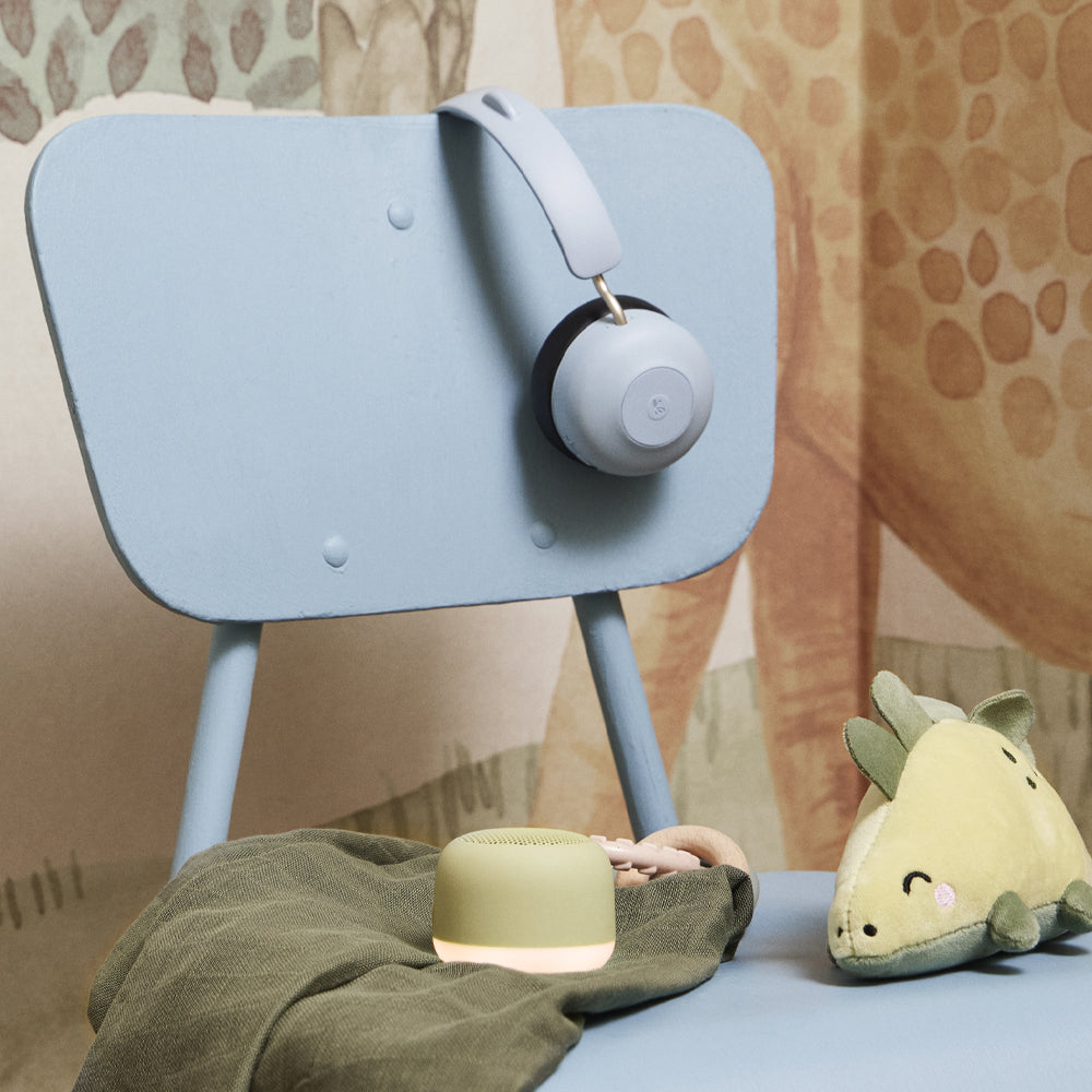 Kreafunk Kids Buzz Junior Bluetooth Headphones – Cloudy Blue – Buzz Junior Safe Audio Headphones.Where Fun Meets Function Safely.Delightfully designed with playful bear ears, Buzz Junior headphones are sure to be loved by little listeners everywhere. But there’s more to these than their charming looks they’re thoughtfully crafted to provide young children with a safe, comfortable, and joyful audio experience.The ultra-soft ear cushions feel like fluffy marshmallows, offering a snug and cozy fit, perfect for long listening sessions at home, during car rides, or on adventurous family getaways.Built with your child’s well-being in mind, these headphones feature a volume cap of 79dB to protect developing ears without compromising on sound quality. Crafted from 100% recycled GRS-certified plastic and recycled vegan leather, they reflect our commitment to sustainability because happy kids deserve a healthy planet.