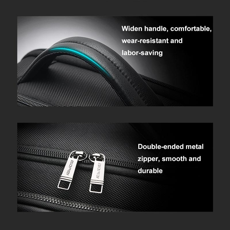 • Back strap design, the backpack can be fixed on the suitcase trolley