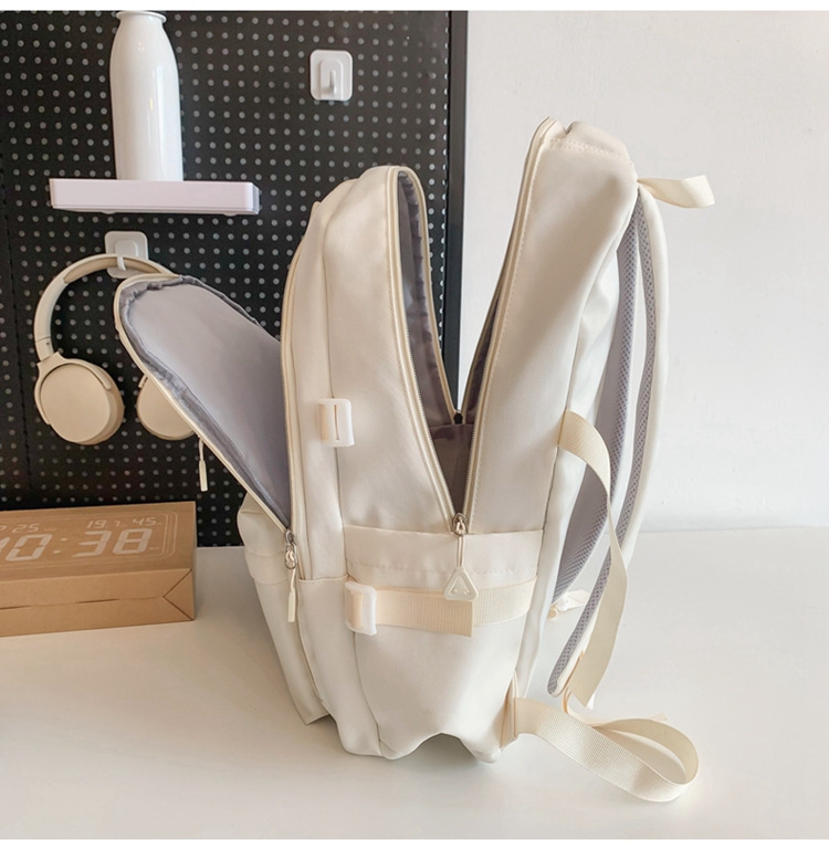 Carry your essentials in style and comfort with this Large Capacity Nylon Backpack. Designed for versatility and durability, this backpack is perfect for students, commuters, and travelers alike. It features a spacious main compartment capable of holding a tablet computer, A4 magazines, a short umbrella, phone, power bank, and more. Crafted from durable nylon fabric, it’s built to withstand daily wear. The backpack includes multiple thoughtfully designed pockets: a front zippered pocket, side pockets ideal for water bottles or small umbrellas, and a secure back zippered pocket for valuables. Adjustable shoulder straps ensure a comfortable fit, while triangular reinforcements add to its durability. Smooth zippers and a convenient top handle complete this practical and stylish backpack.
