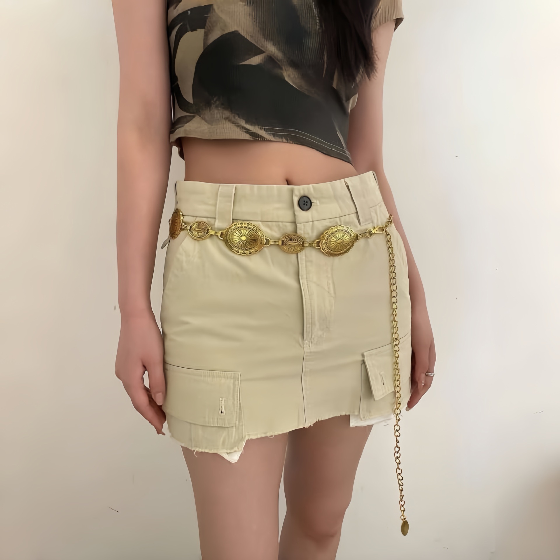 Elevate your outfits with this stunning set of four distinct metal waist chains, each infused with Bohemian and ethnic-inspired charm. Designed to add a touch of retro flair and high-fashion sensibility, these versatile chains are perfect for accentuating your waistline over dresses, tunics, shirts, or skirts.