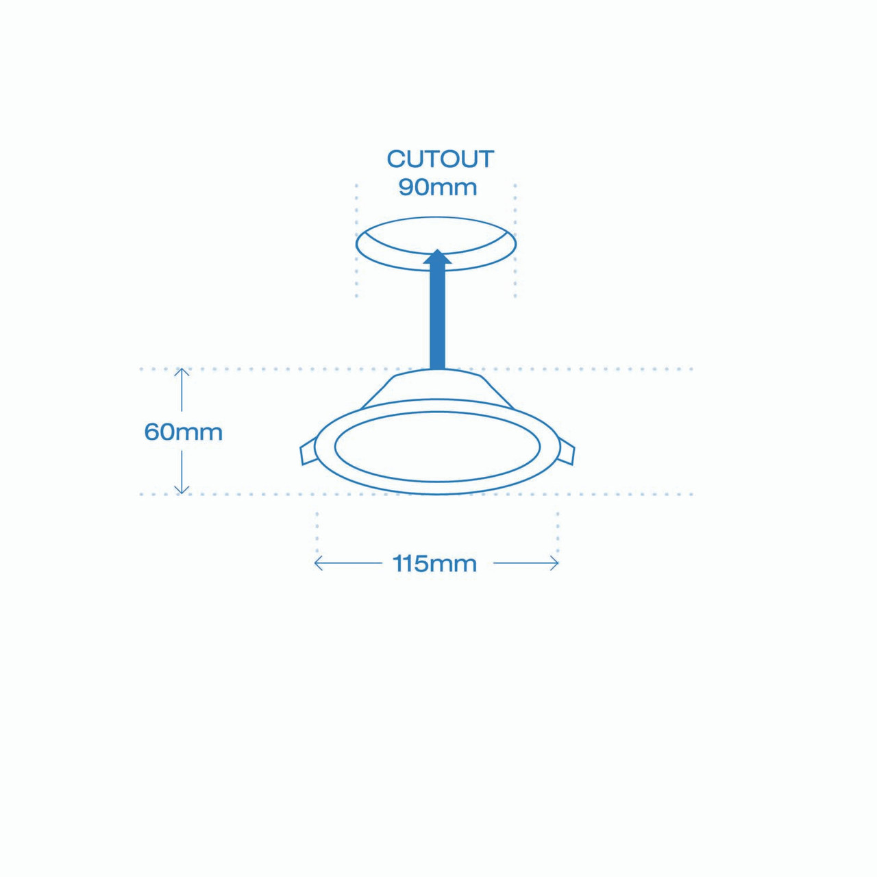 - Professional Installation Required: The downlight requires a 240V plug fitting and a 90mm cut-out ceiling hole for installation by a qualified electrician.