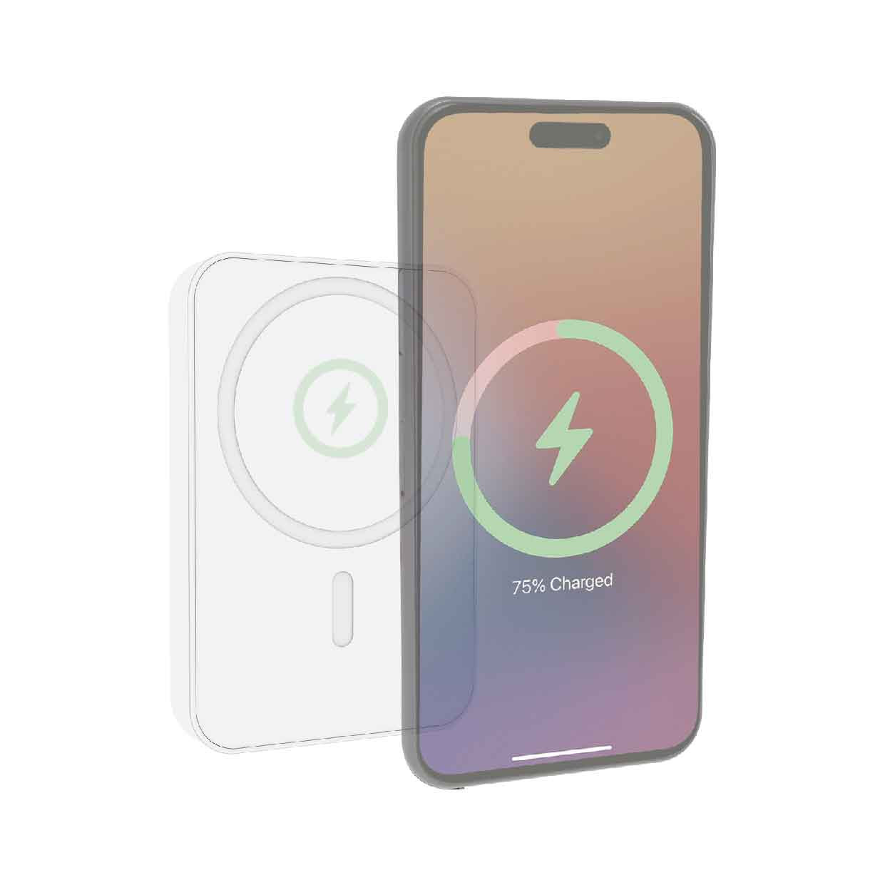 Laser 5000mAh Magnetic Wireless Power Bank White