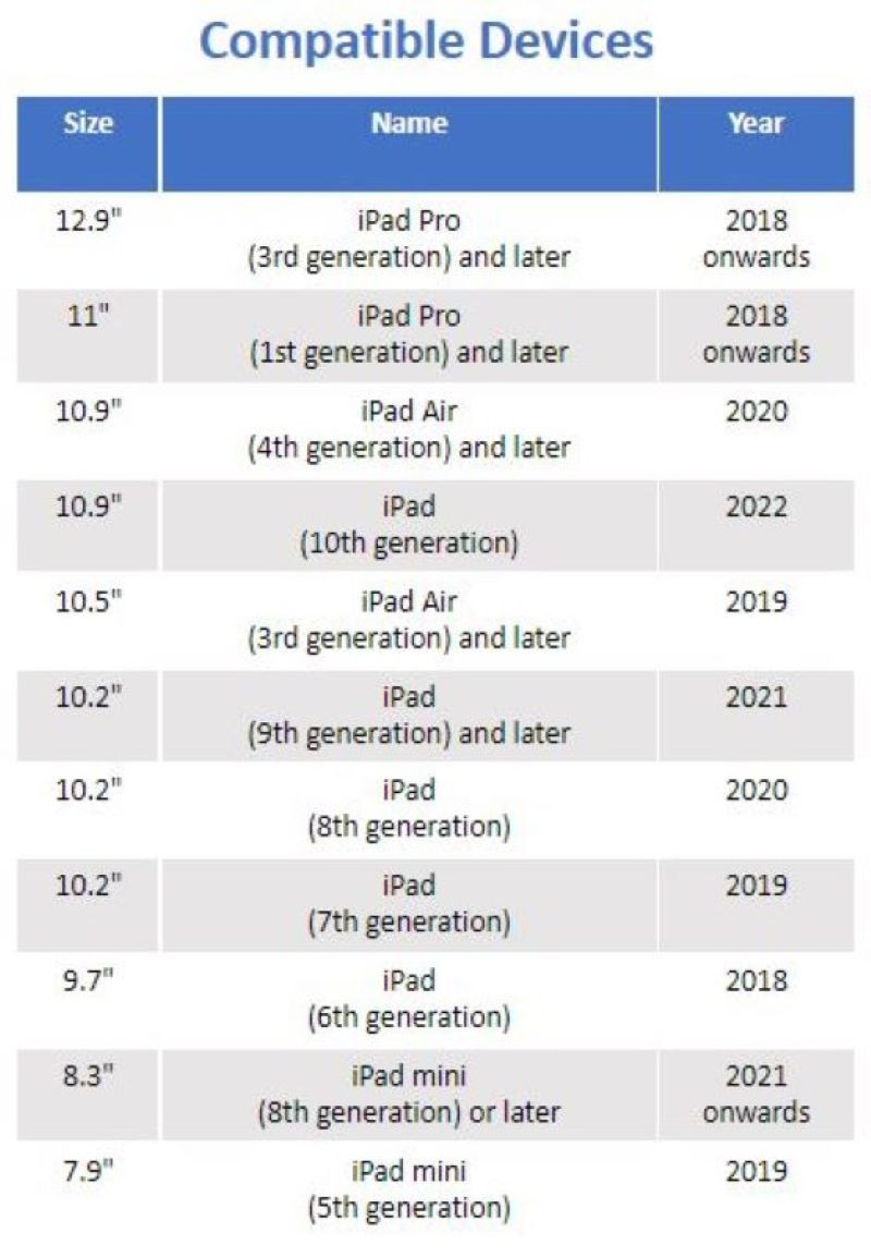 - Wide Compatibility: Works seamlessly with iPad Pro, iPad Air, iPad Mini, and iPad models released in 2018 or later.
