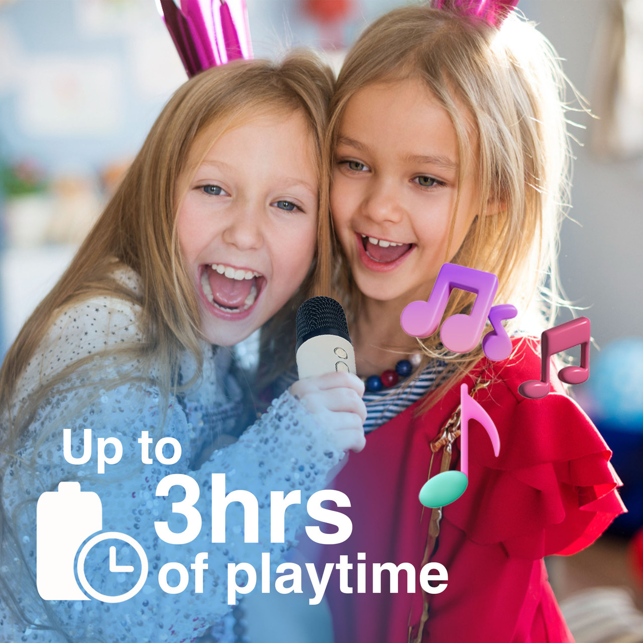 Battery Life: The fun doesnt have to end anytime soon, thanks to an extended battery life of up to 2 hours* on a single charge. Whether its an afternoon sing-along or a nighttime dance-off, the Laser Kids Karaoke Speaker is ready to keep the excitement going.
