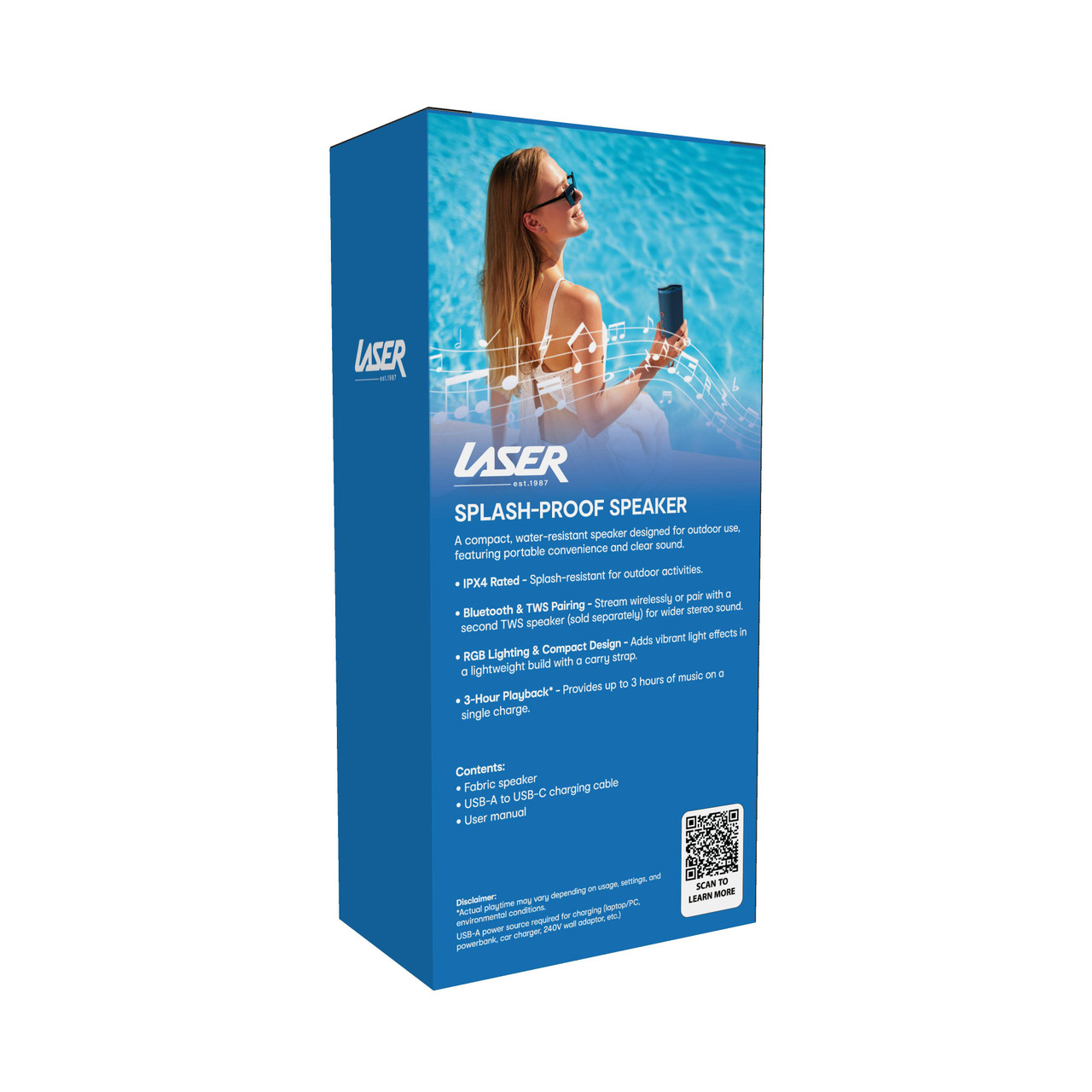 For outdoor music lovers, adventurers, and partygoers, the Laser Splash-Proof Speaker delivers portable sound, lighting, and splash-proof protectionwherever life takes you.