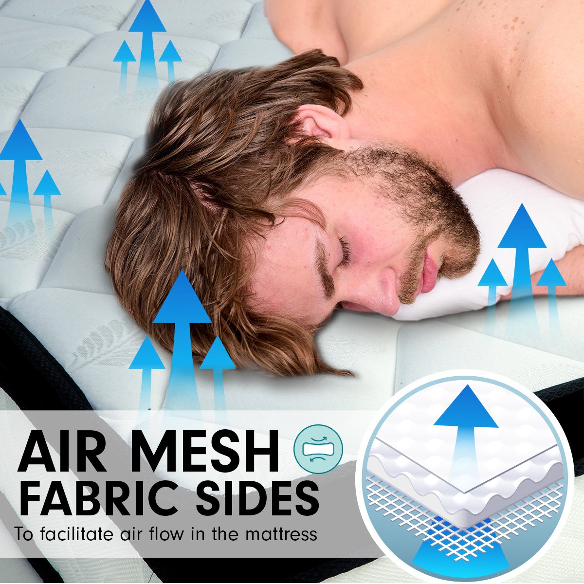 • Air mesh fabric sides to facilitate air flow in the mattress
