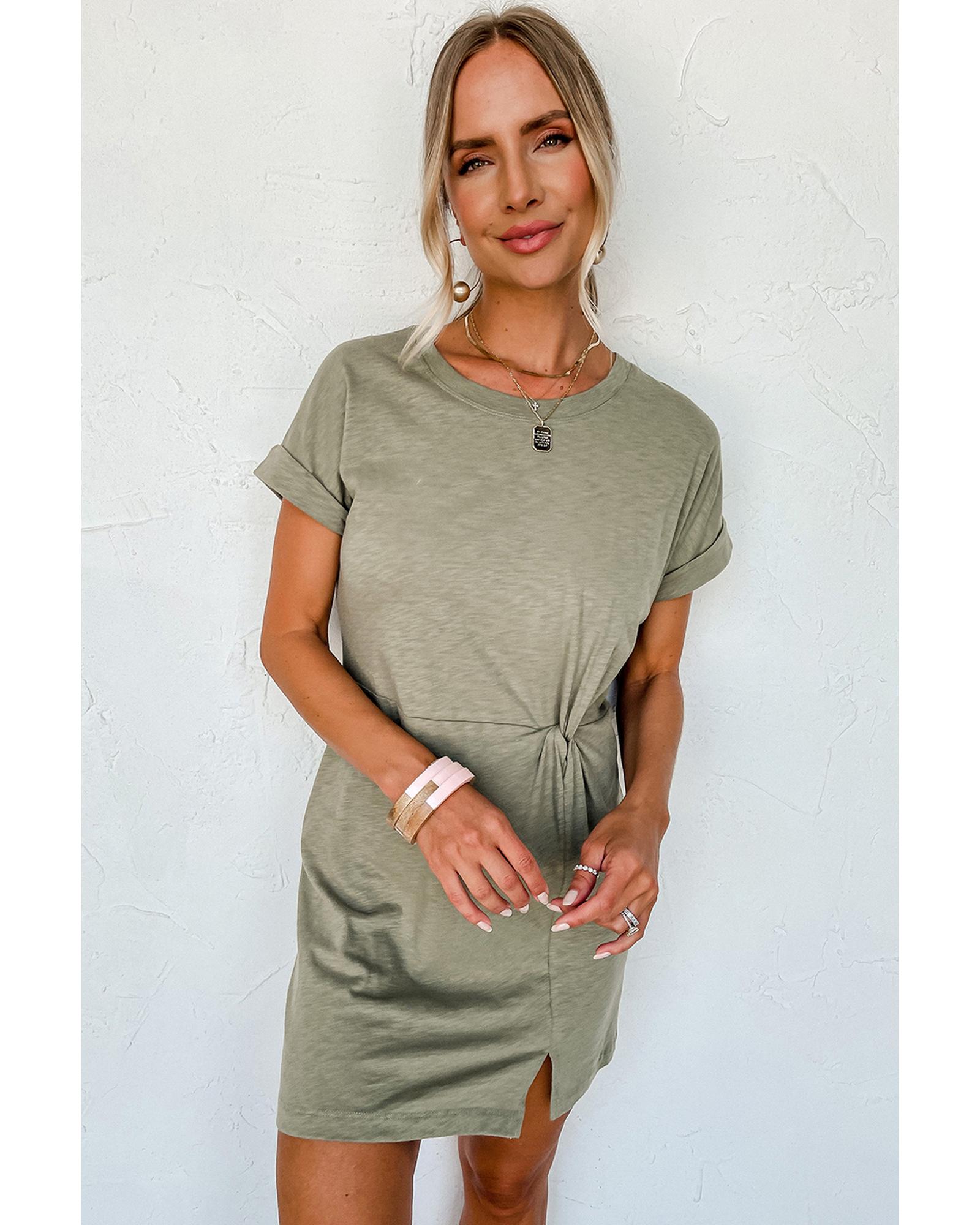 Laurel Green Folded Sleeve Twisted Mini T-Shirt Dress – XL
