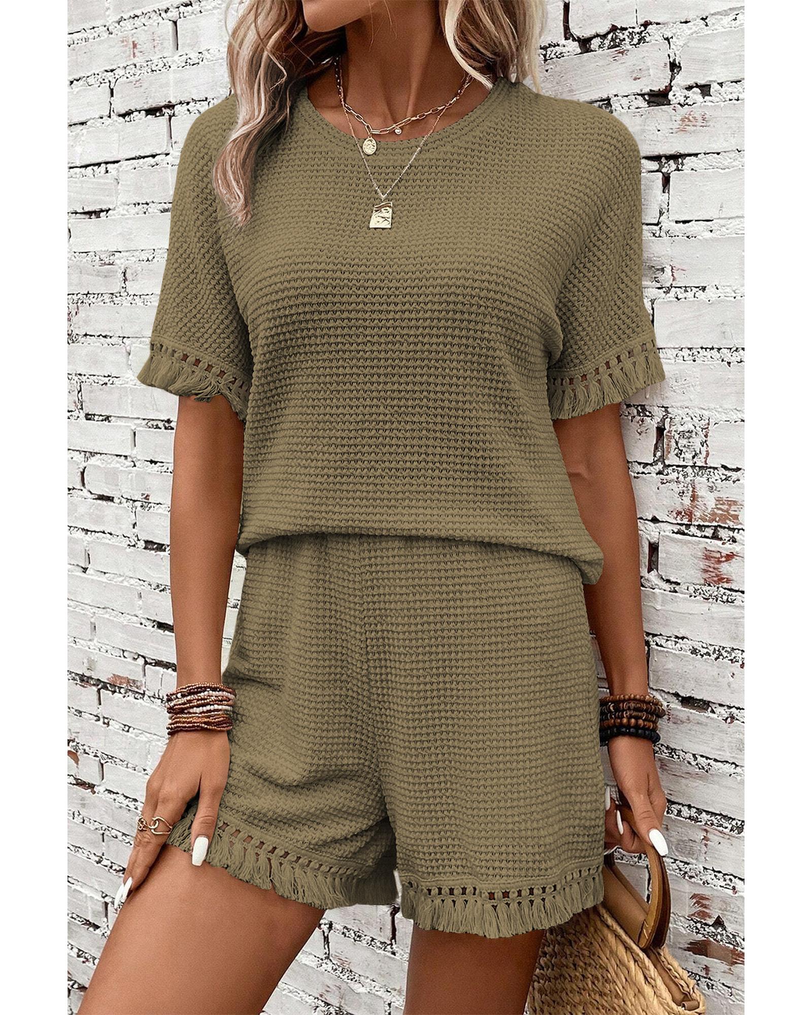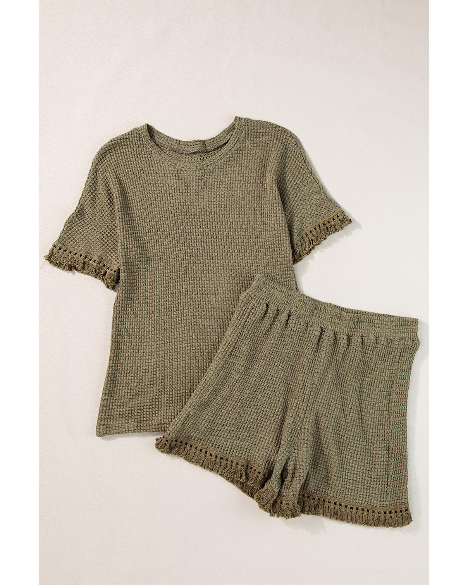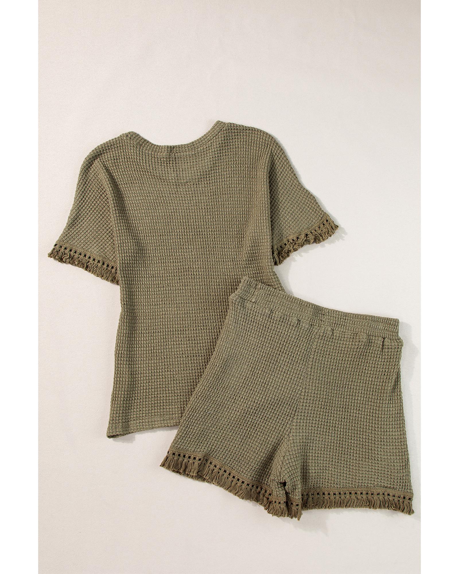 - Laurel Green Fringe Trim Textured Short Two Piece Set