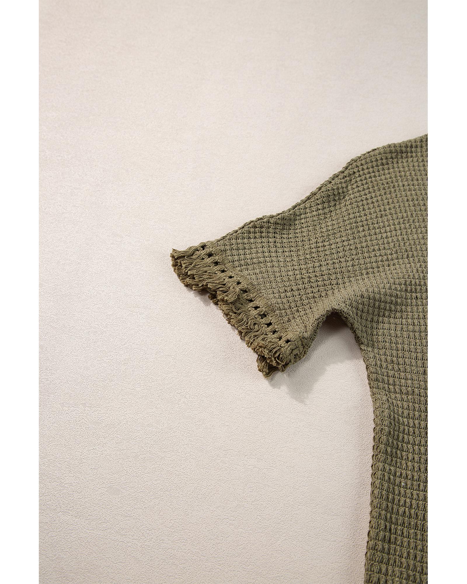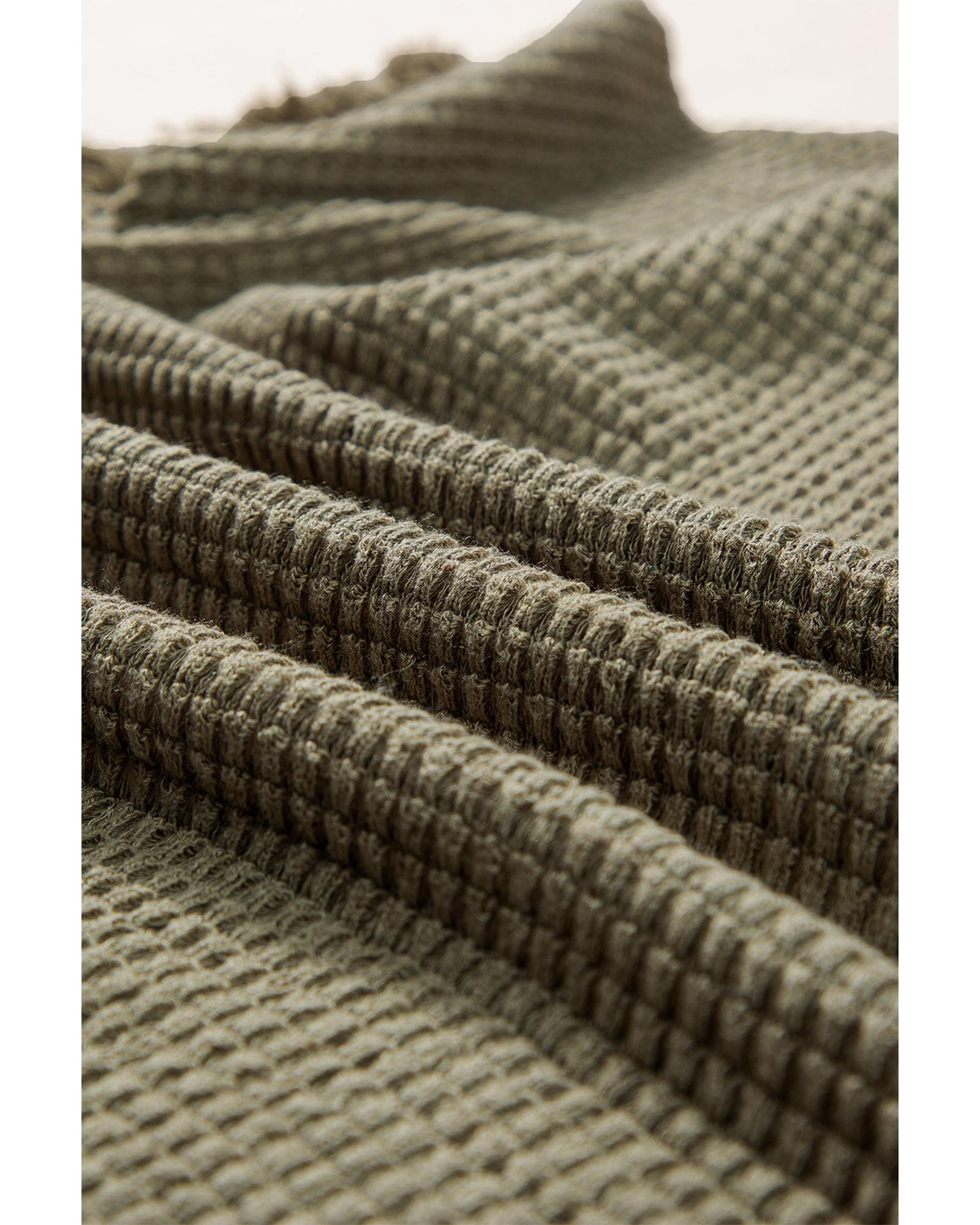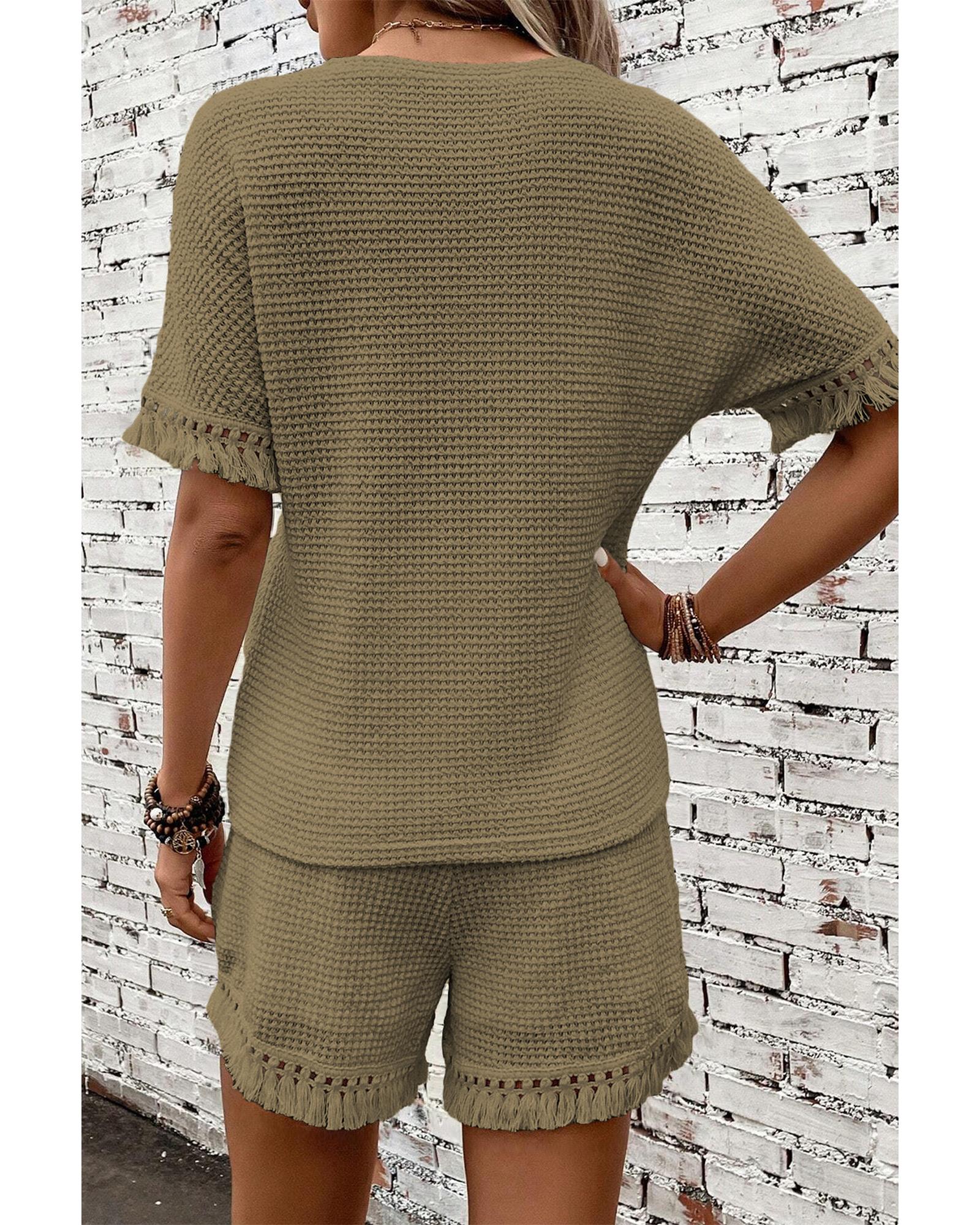 - Laurel Green Fringe Trim Textured Short Two Piece Set