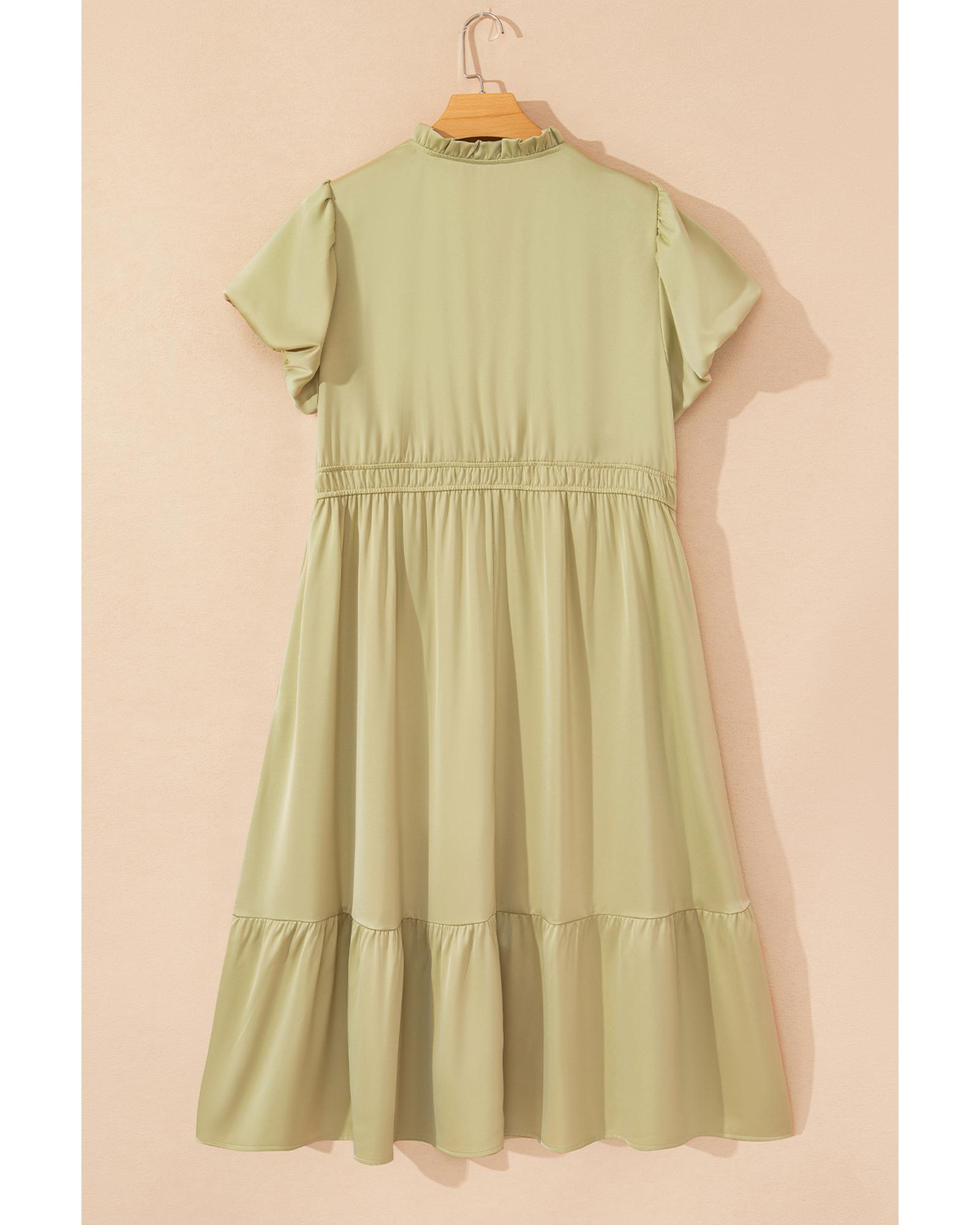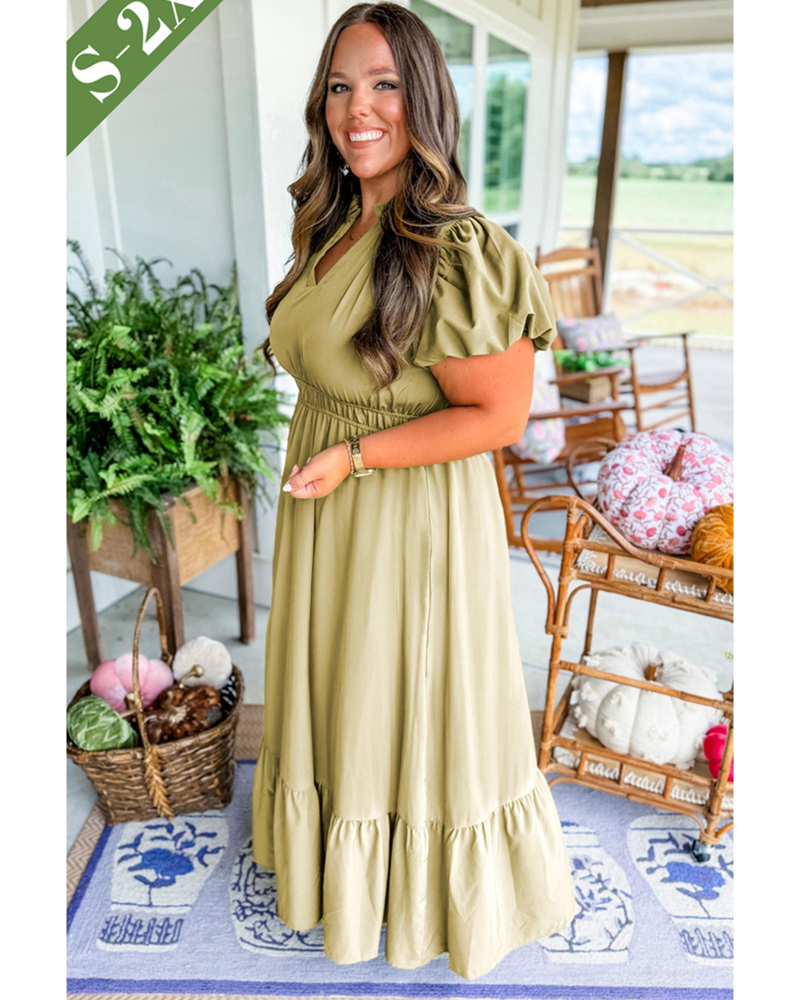 Laurel Green Notched V Neck Puff Sleeve Tiered Plus Size Maxi Dress – 4X