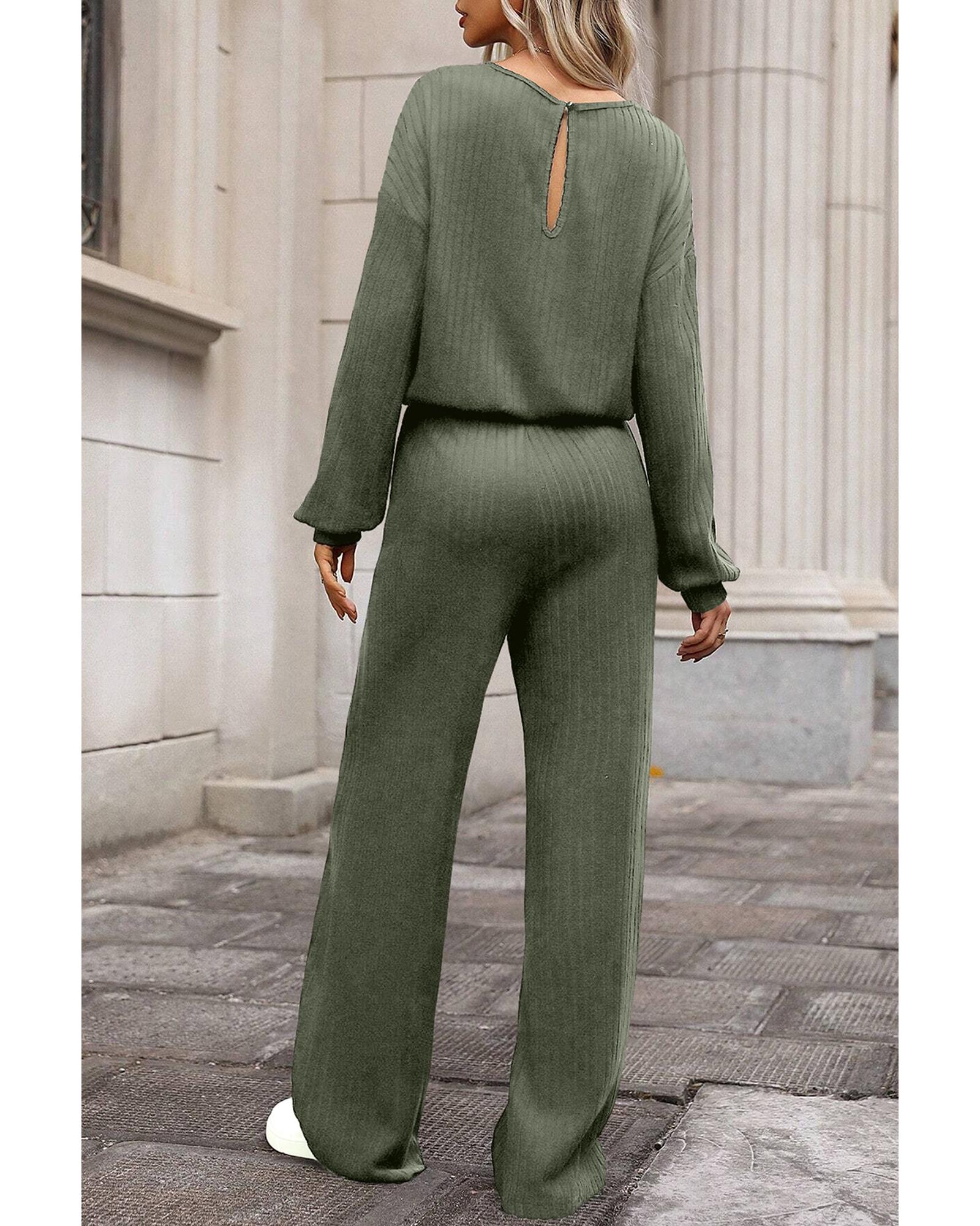 Laurel Green Solid Ribbed Knit Keyhole Back High Waist Jumpsuit – XL