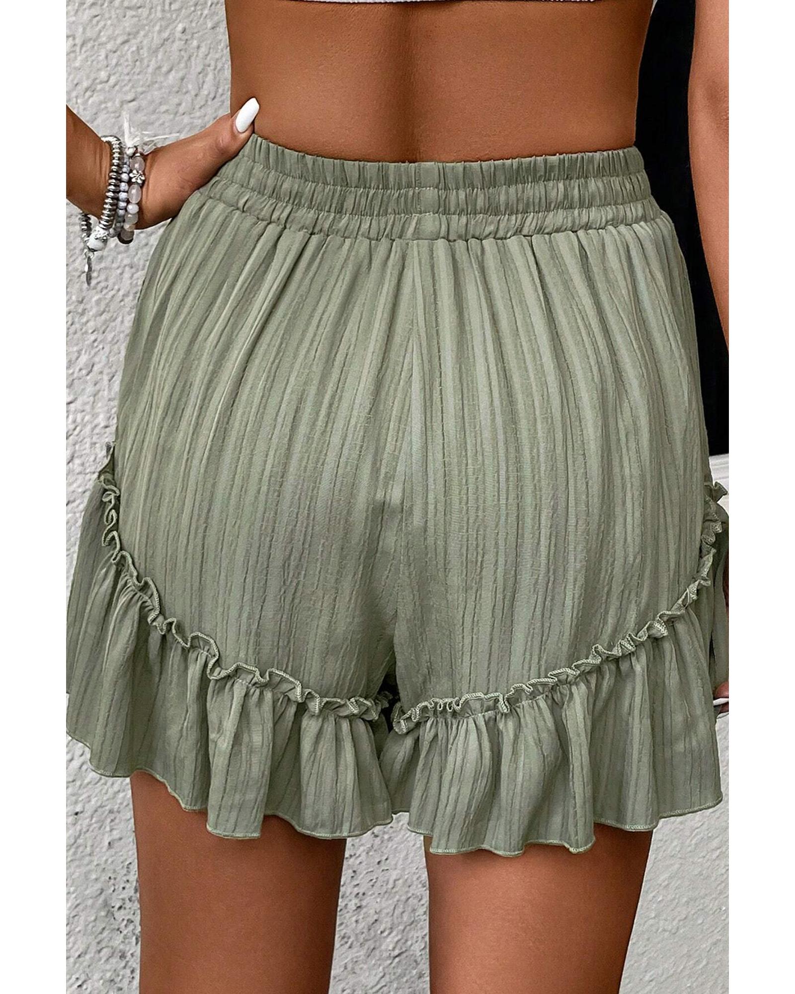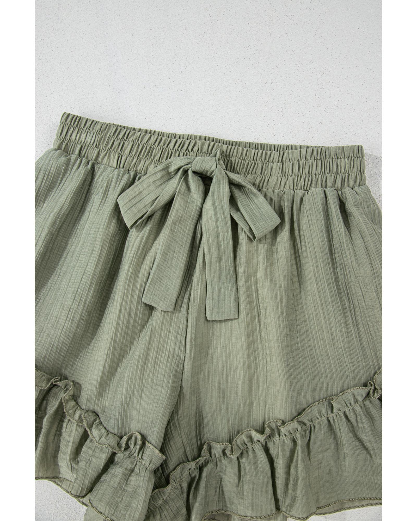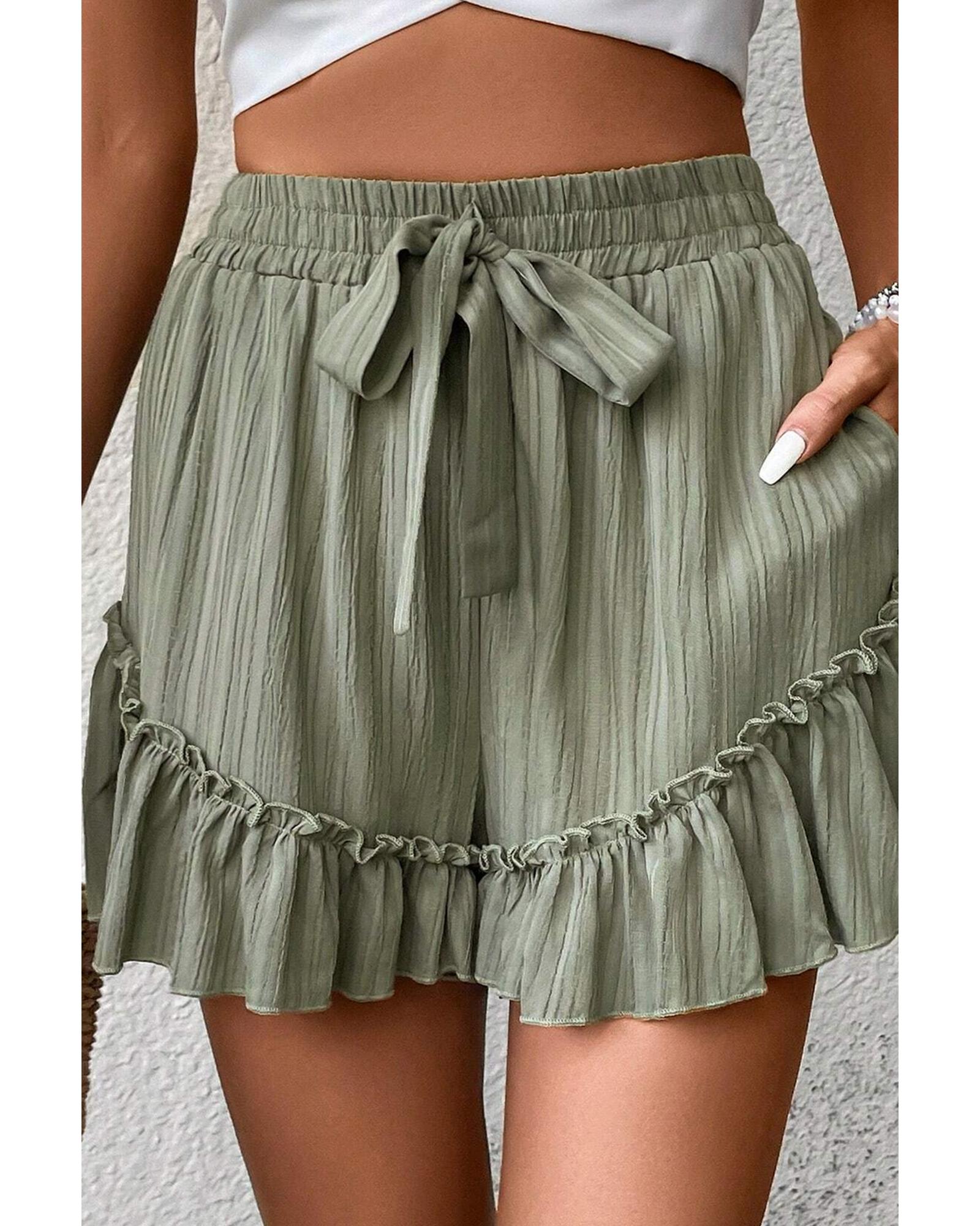 • Laurel Green Textured Tie Waist Ruffle Hem Shorts
