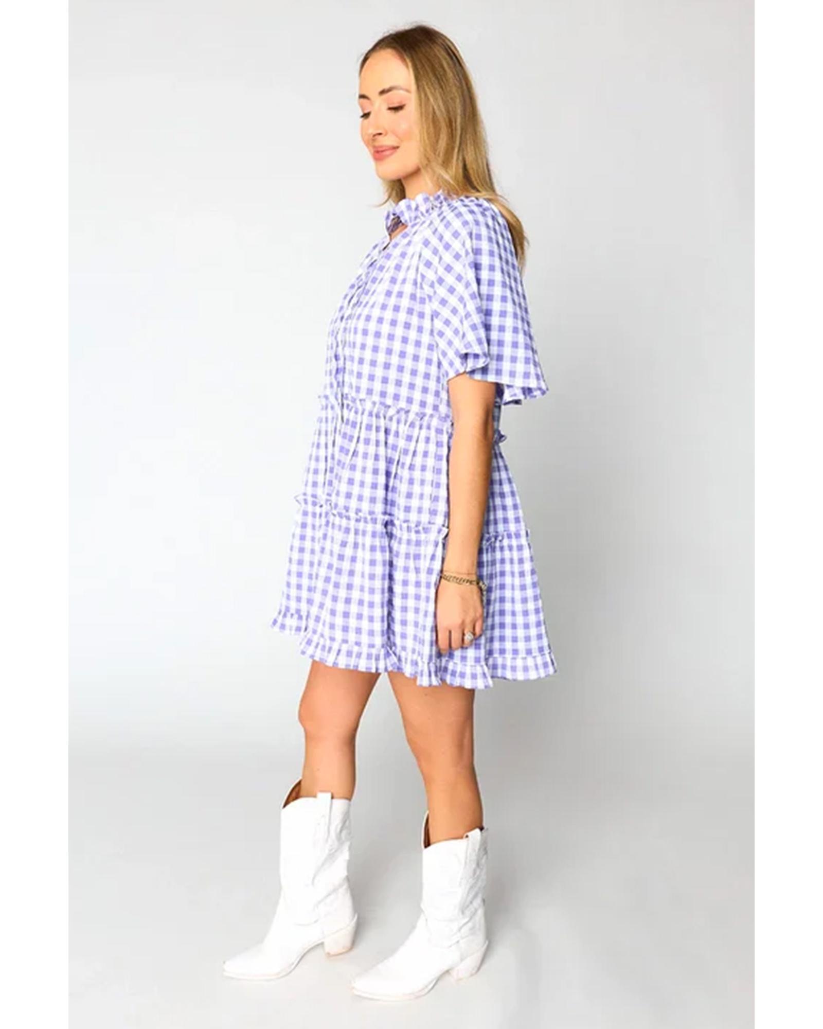 Lavendula Plaid Ruffle Wide Short Sleeve Babydoll Mini Dress – M