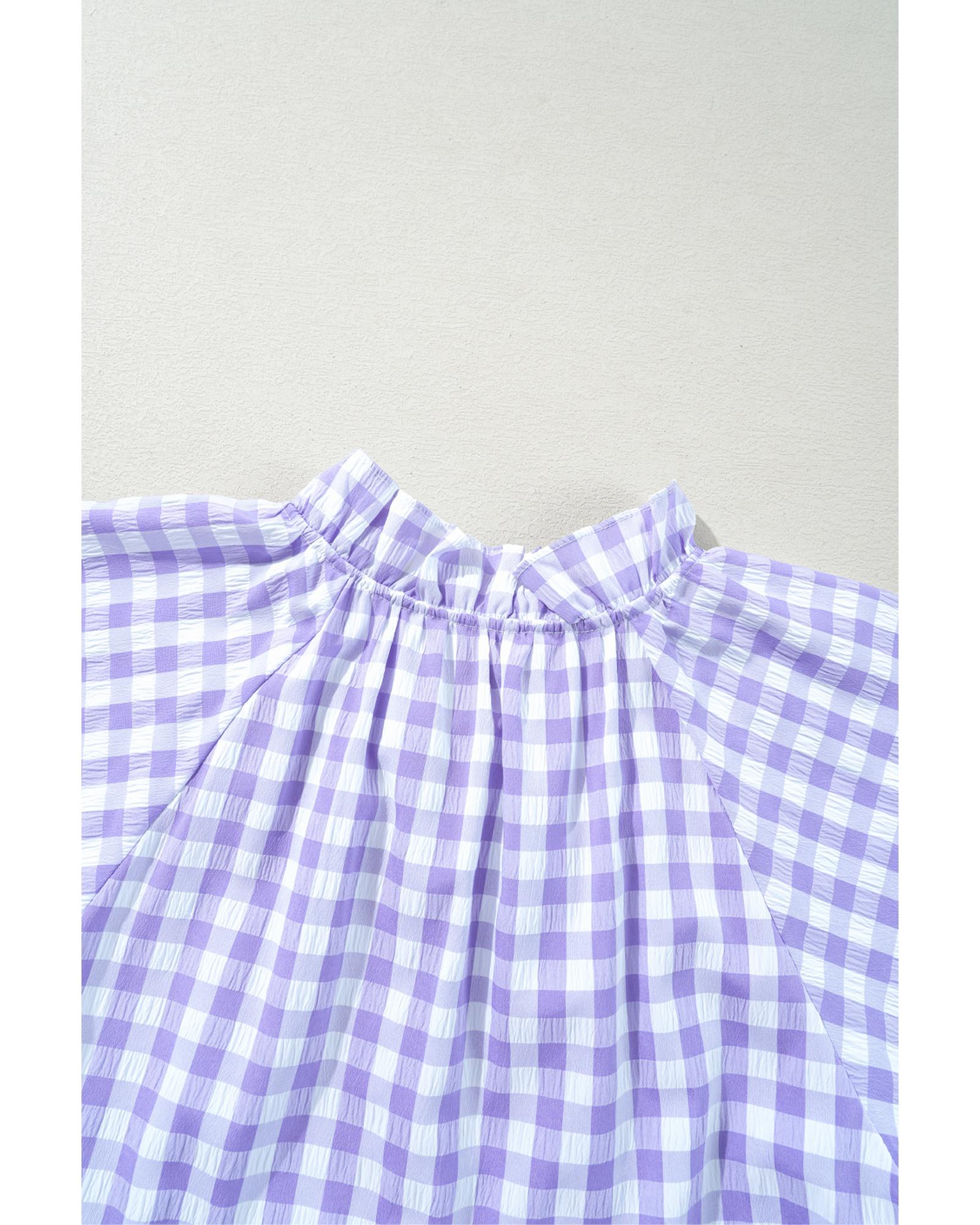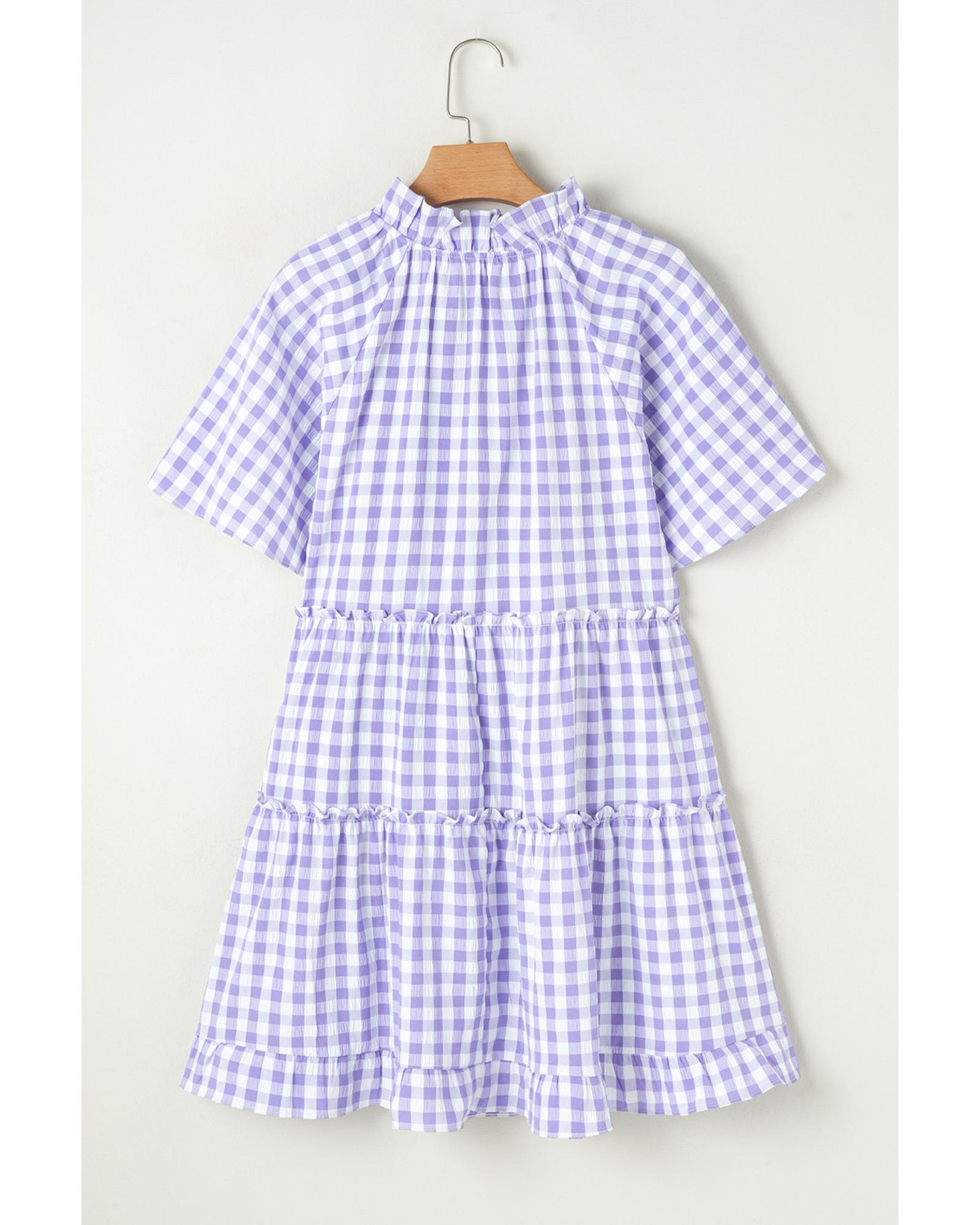 Lavendula Plaid Ruffle Wide Short Sleeve Babydoll Mini Dress – XL