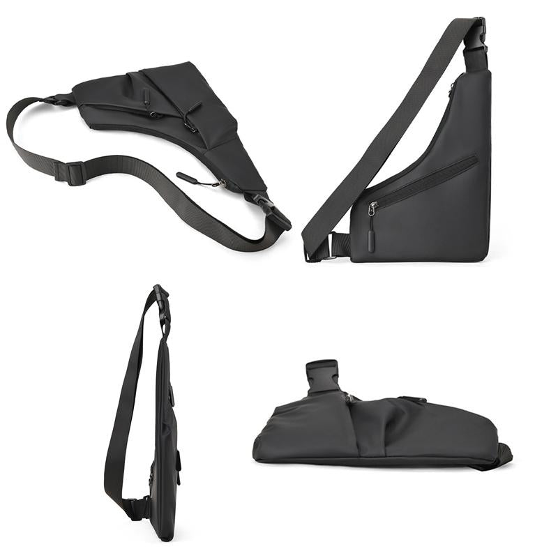 Leather Anti Theft Triangle Bag Secure Crossbody Chest Bag – Black