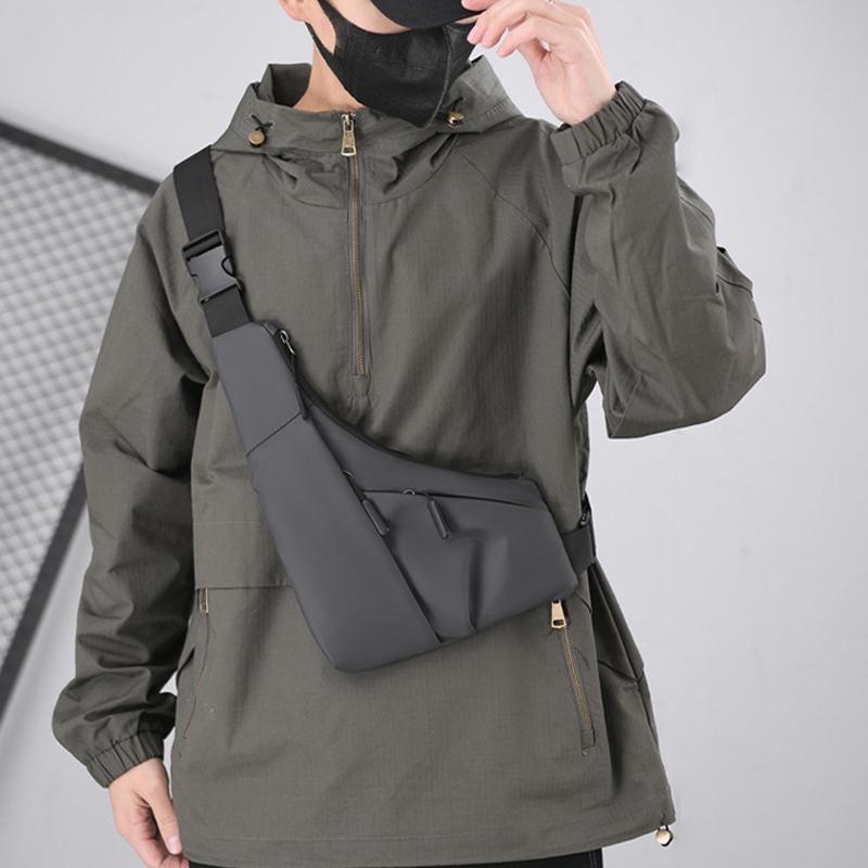 Leather Anti Theft Triangle Bag Secure Crossbody Chest Bag – Grey