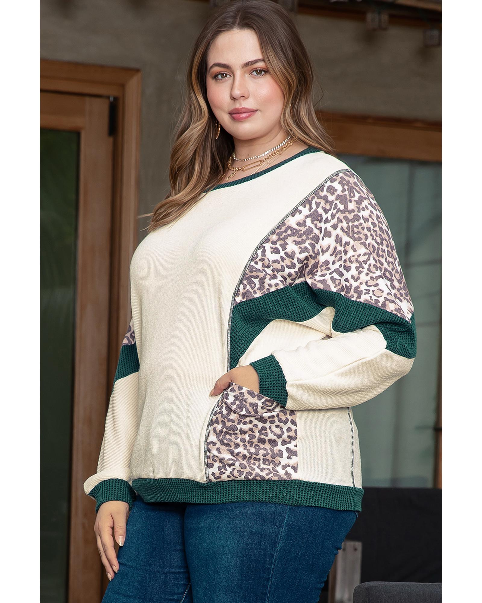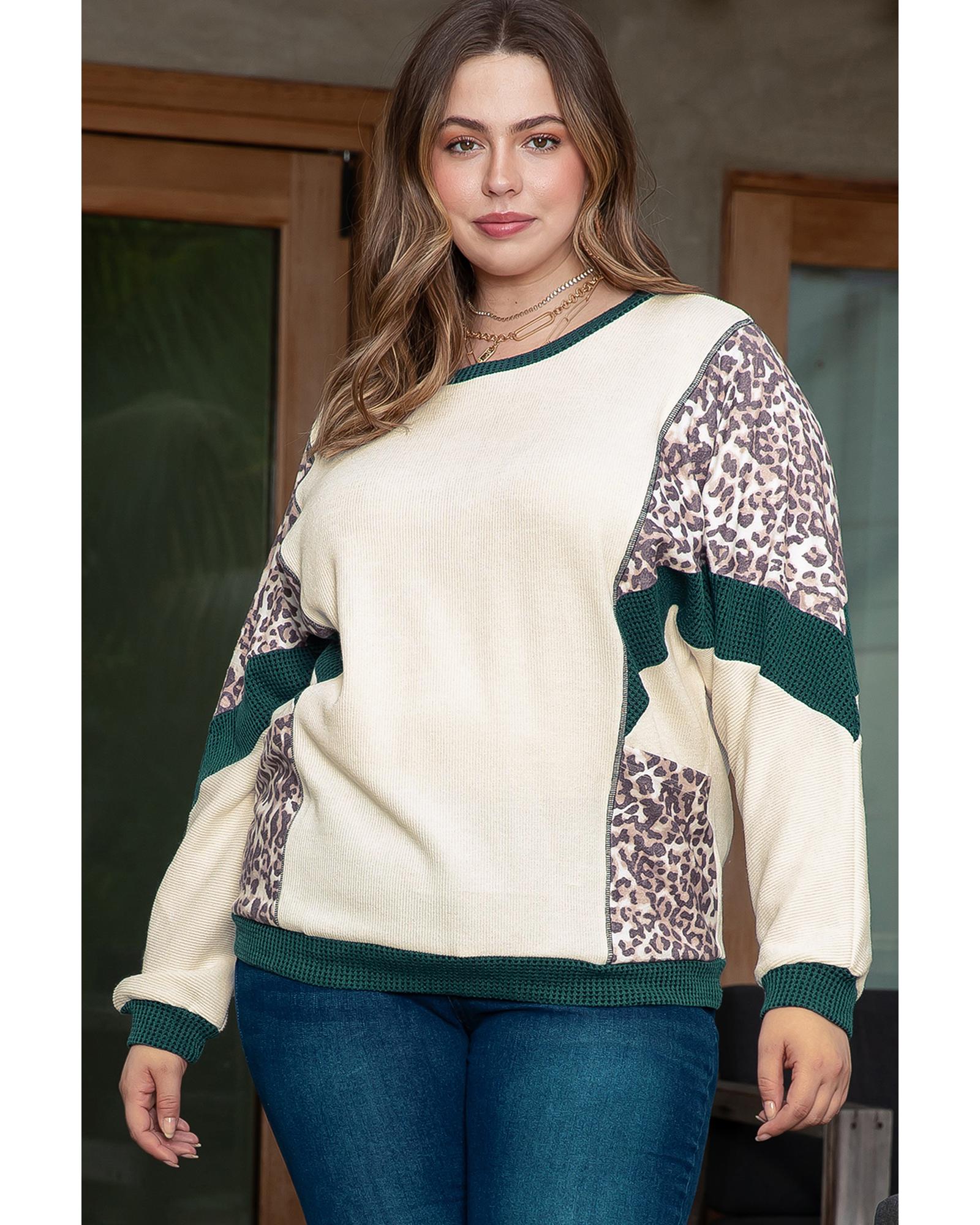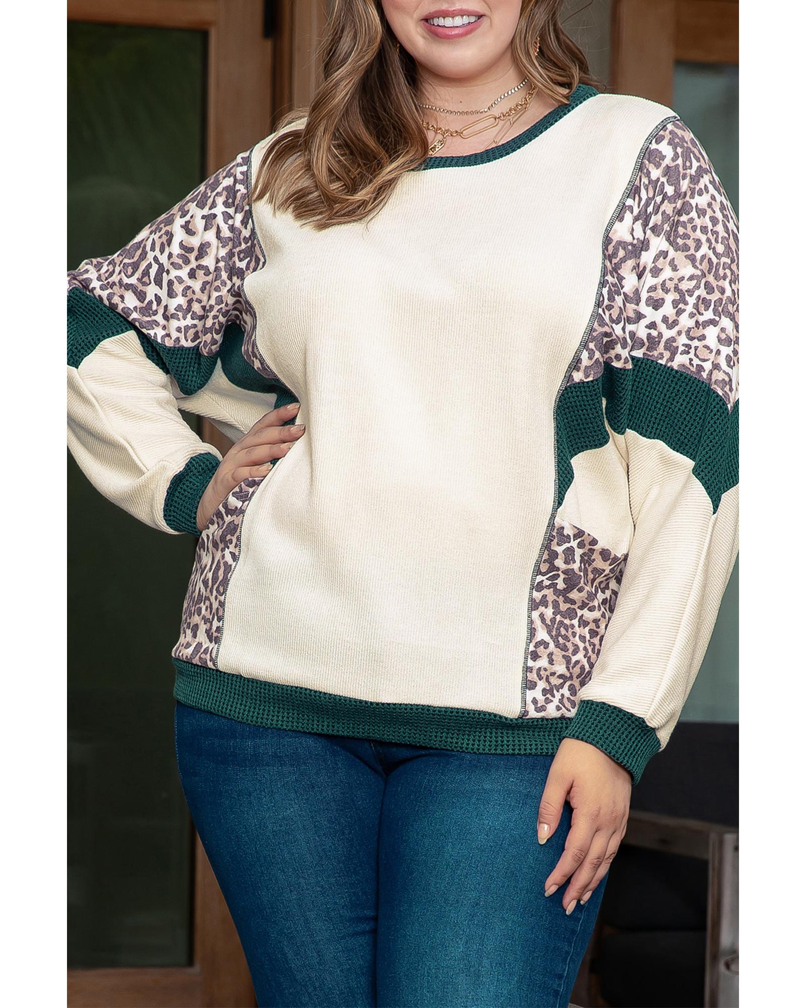 Leopard Colorblock Patchwork Dolman Sleeve Plus Size Top – 2X