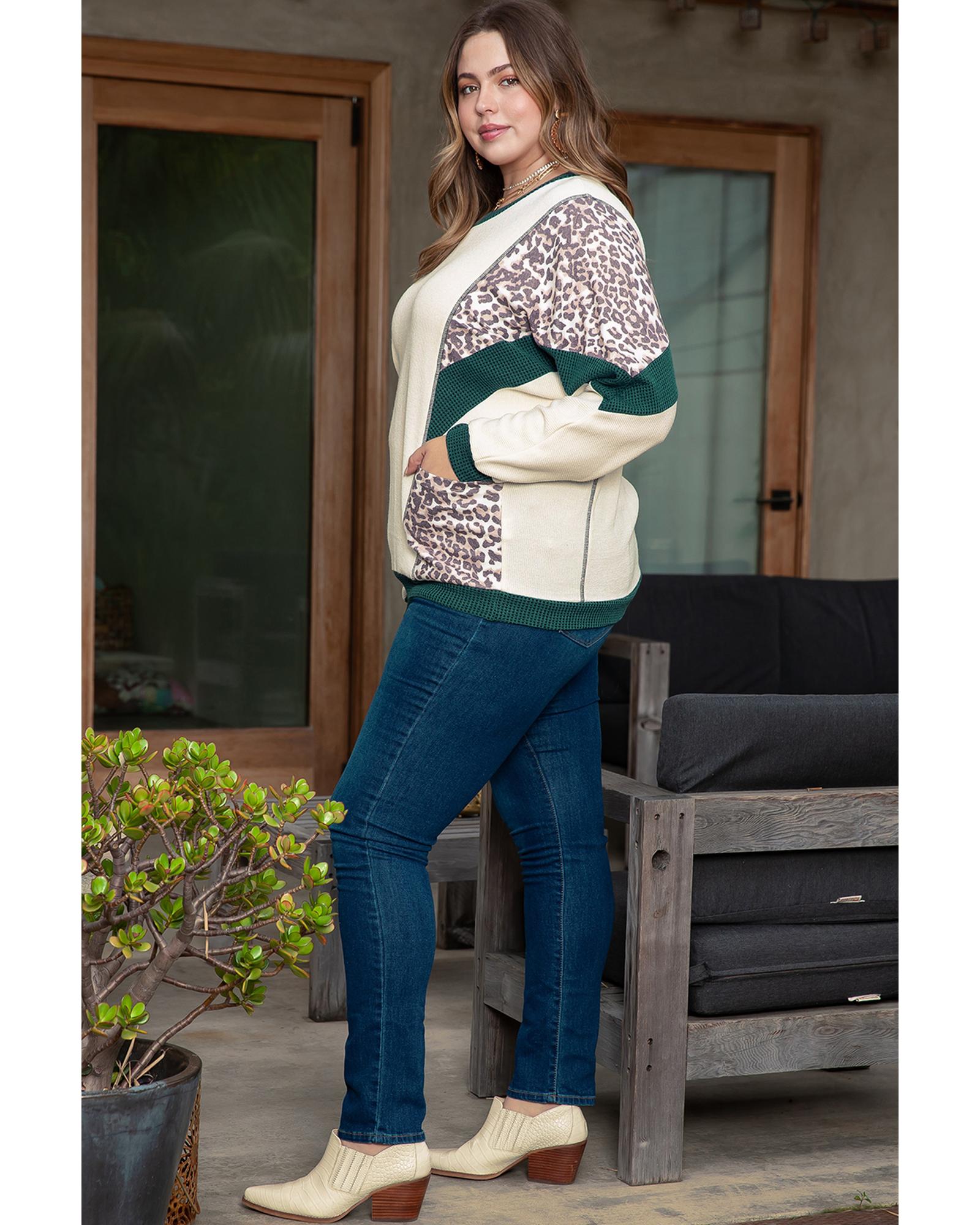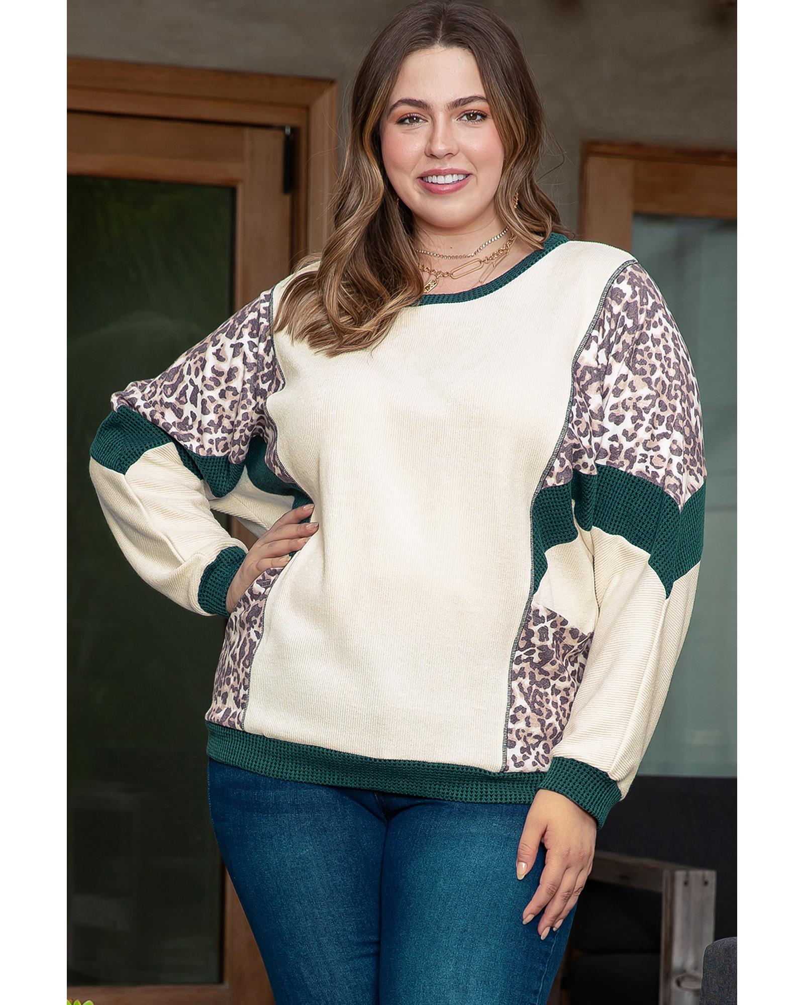 Leopard Colorblock Patchwork Dolman Sleeve Plus Size Top – 3X
