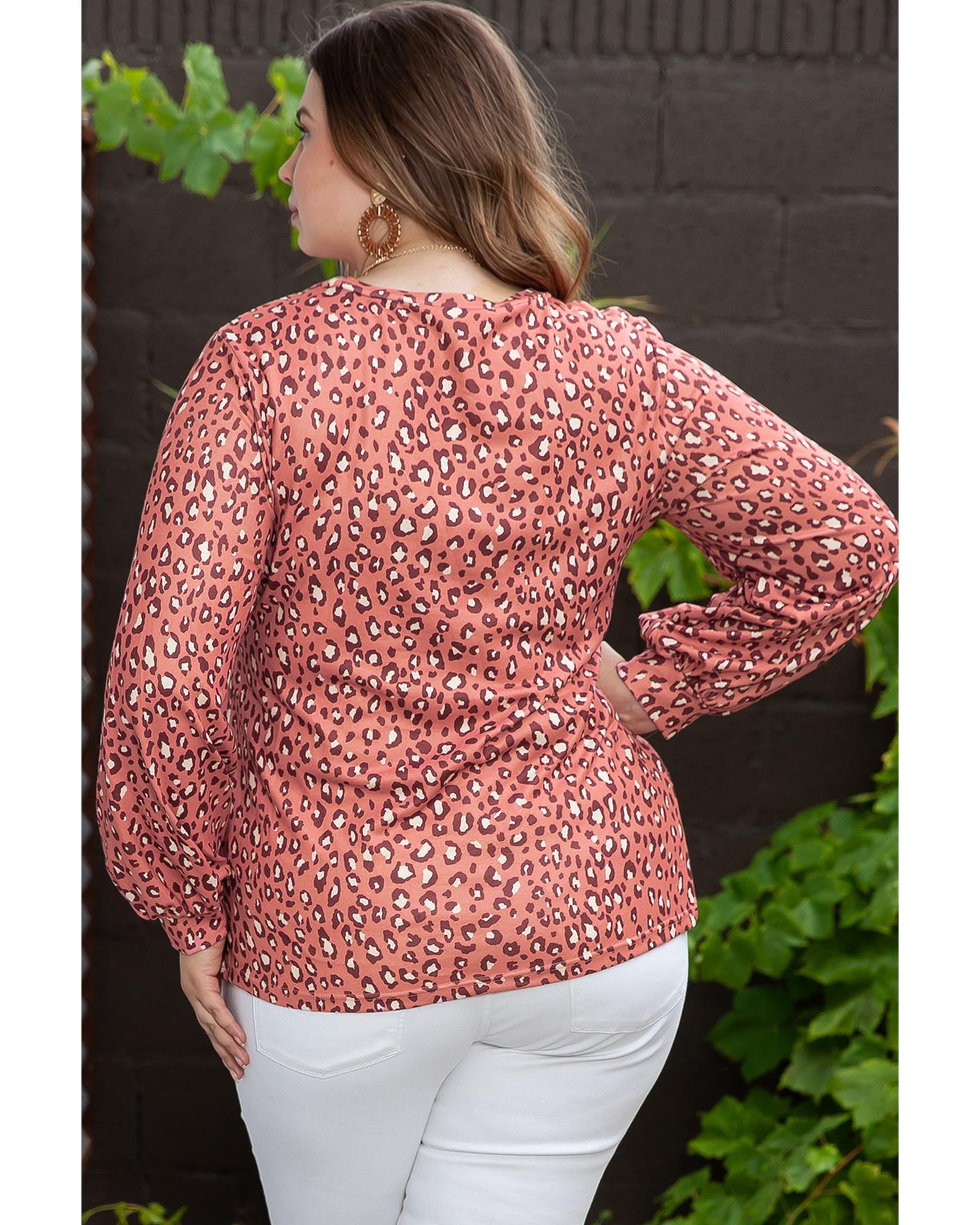 Leopard Print Long Sleeve Ruffled Babydoll Plus Size Blouse – 3X