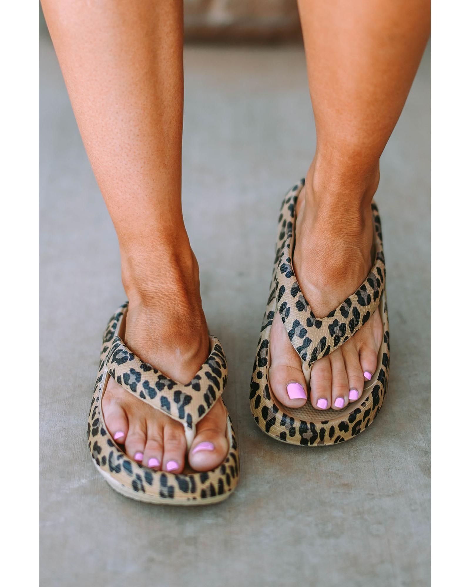 Leopard Print Thick Sole Flip Flops – 37 EU