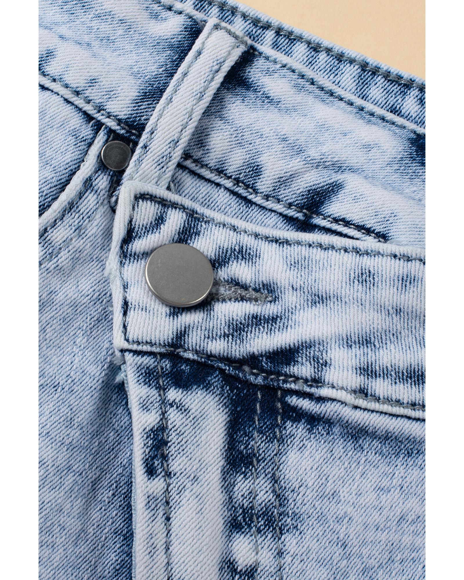 Light Blue Acid Wash Crossed Raw Edge Denim Shorts – 12 US