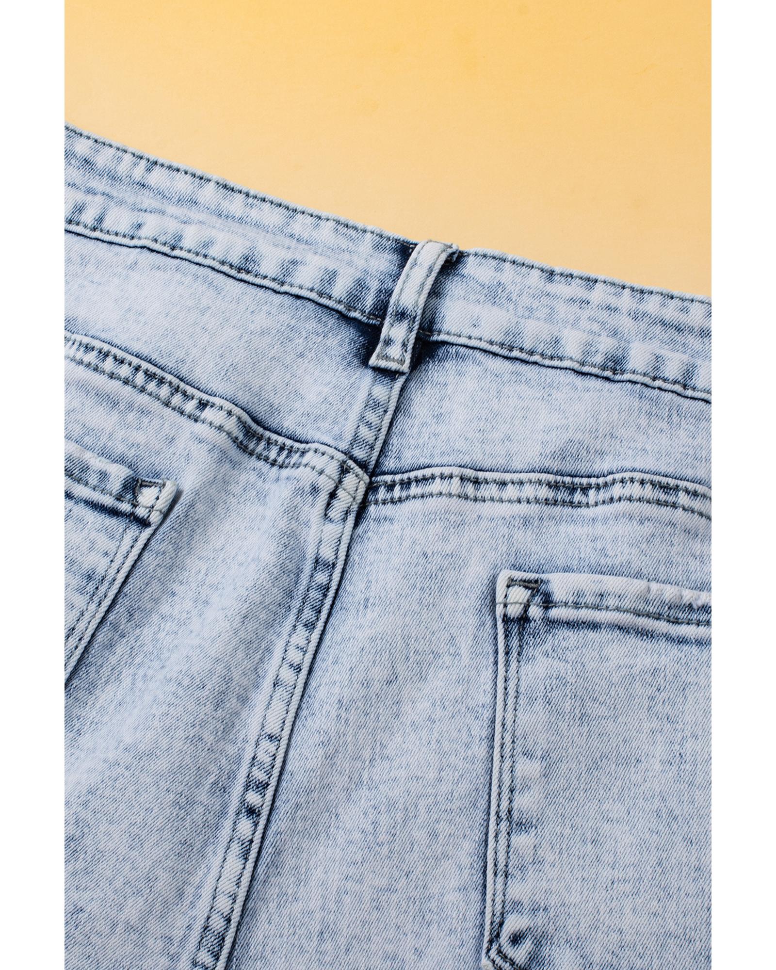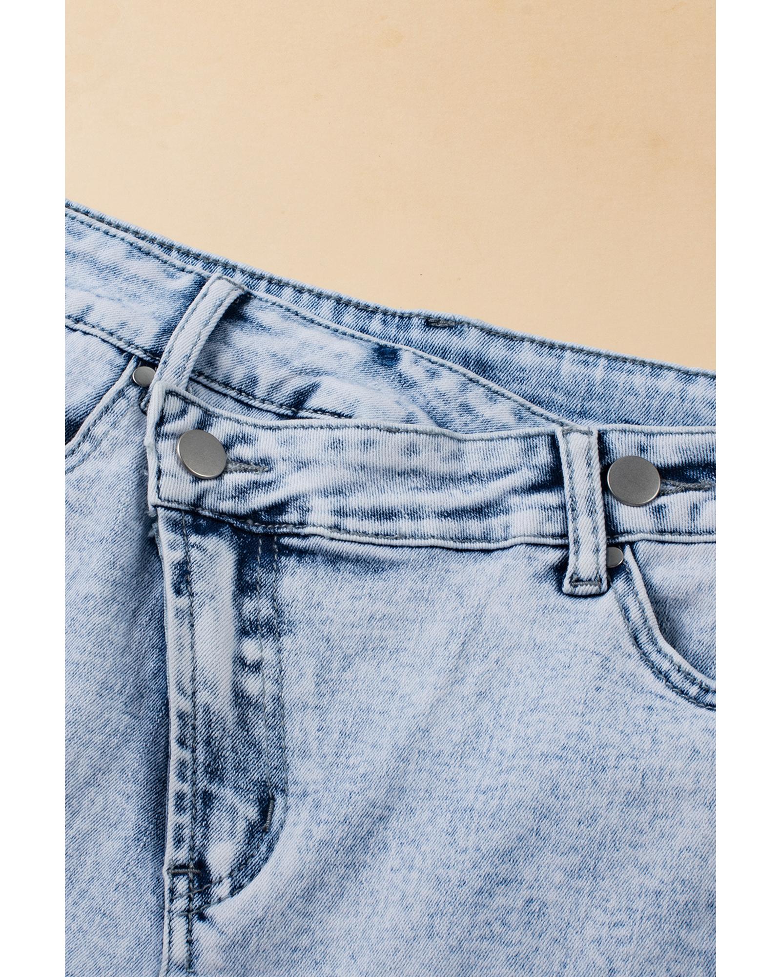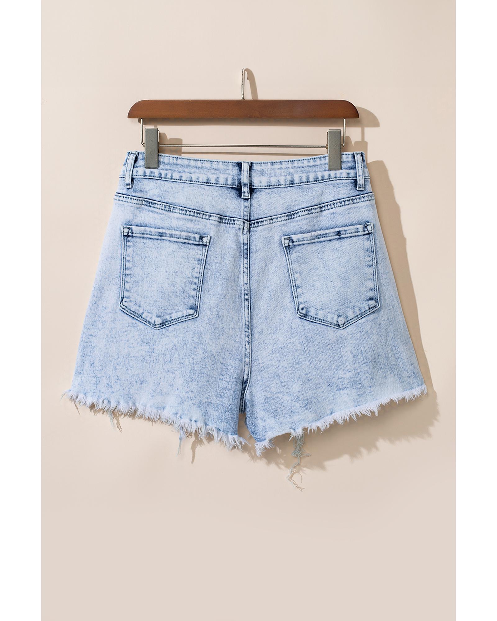 Light Blue Acid Wash Crossed Raw Edge Denim Shorts – 16 US