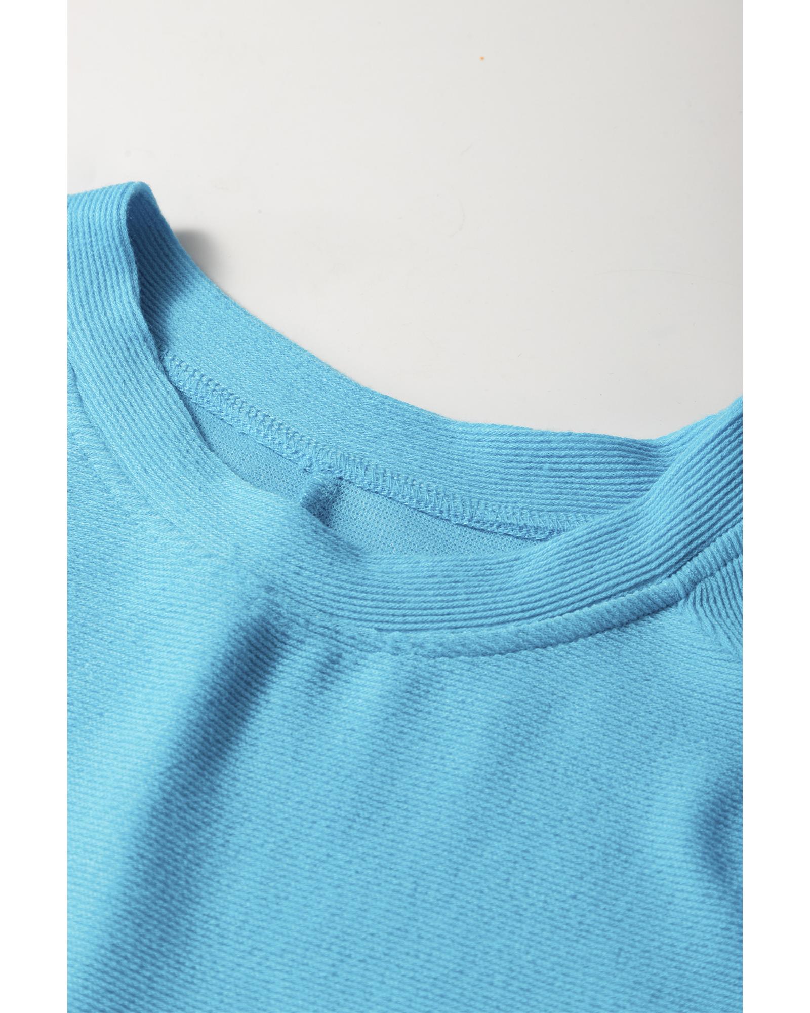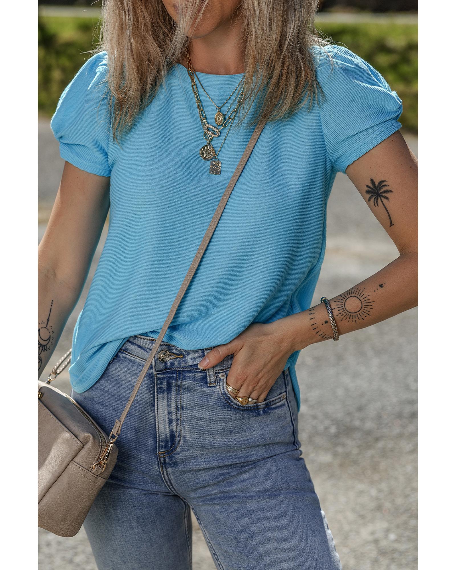 Light Blue Bubble Sleeve Solid Color Elegant T-Shirt – M