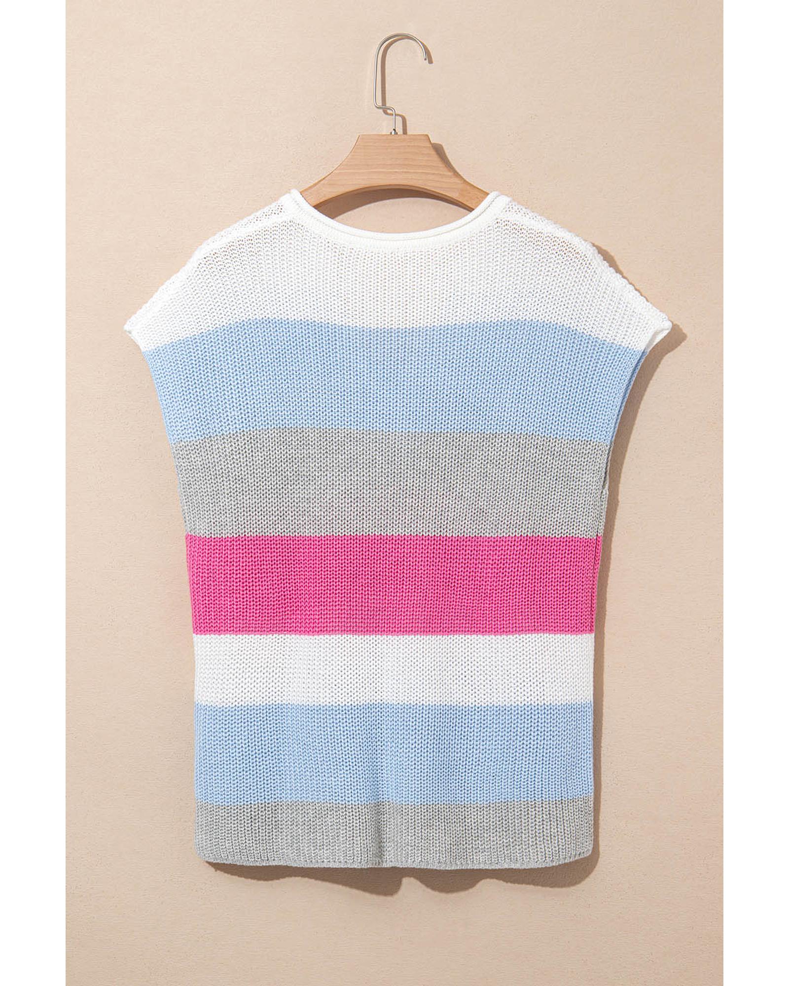 Light Blue Color Block Notch V Neck Sweater T Shirt – M