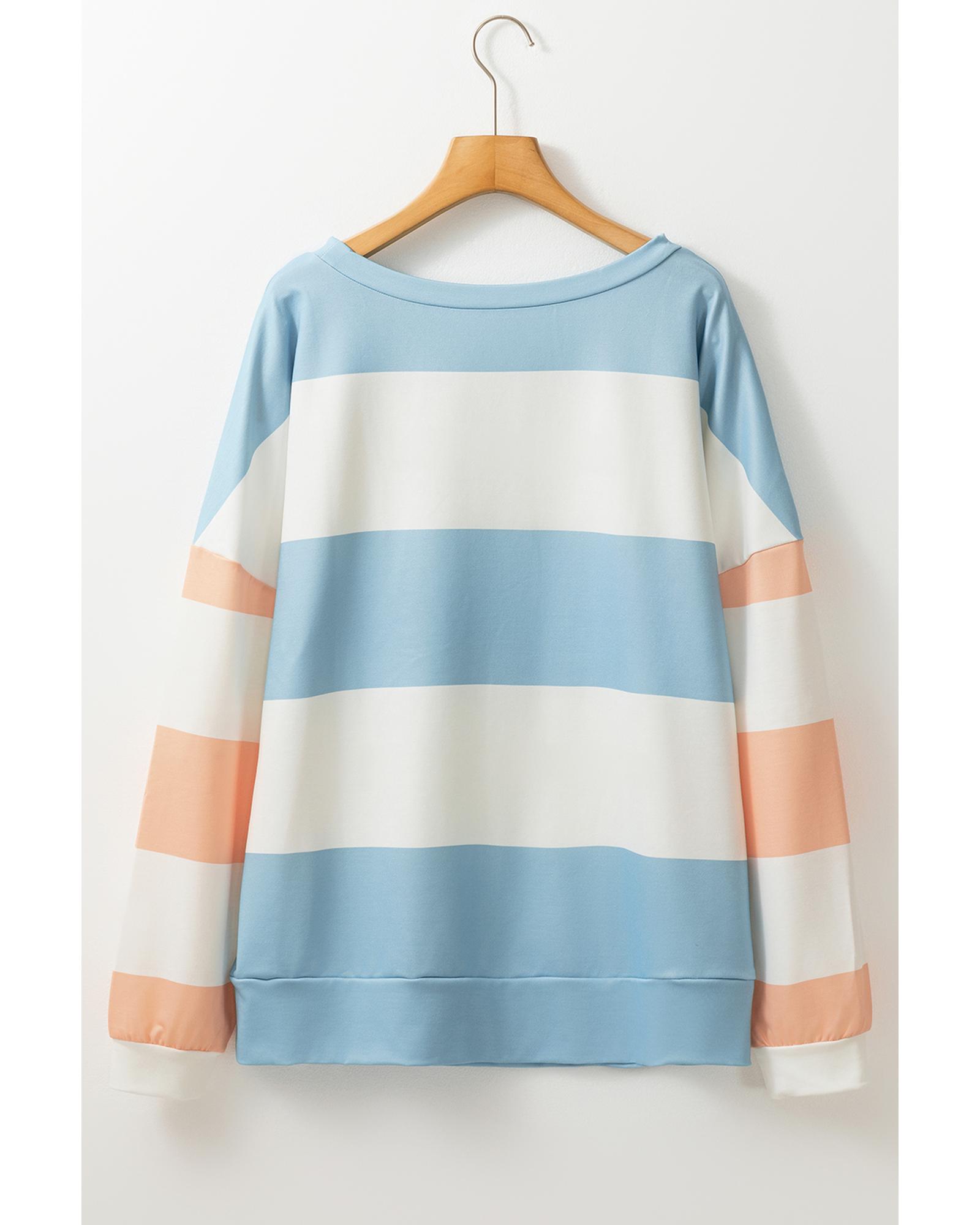 Light Blue Colorblock Striped Drop Shoulder Long Sleeve Top – M