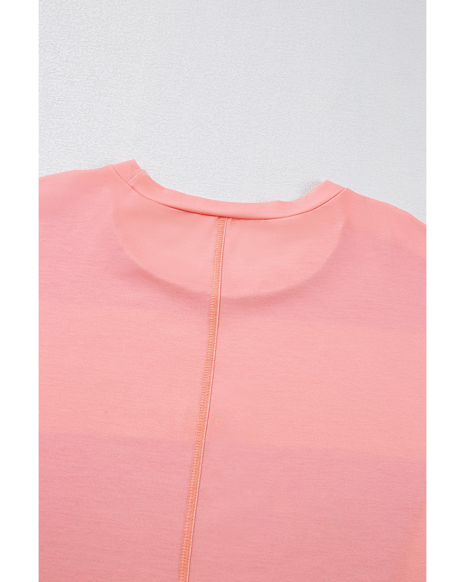 Orange Color Block Side Slits Raglan Sleeve Loose Fit Top - S