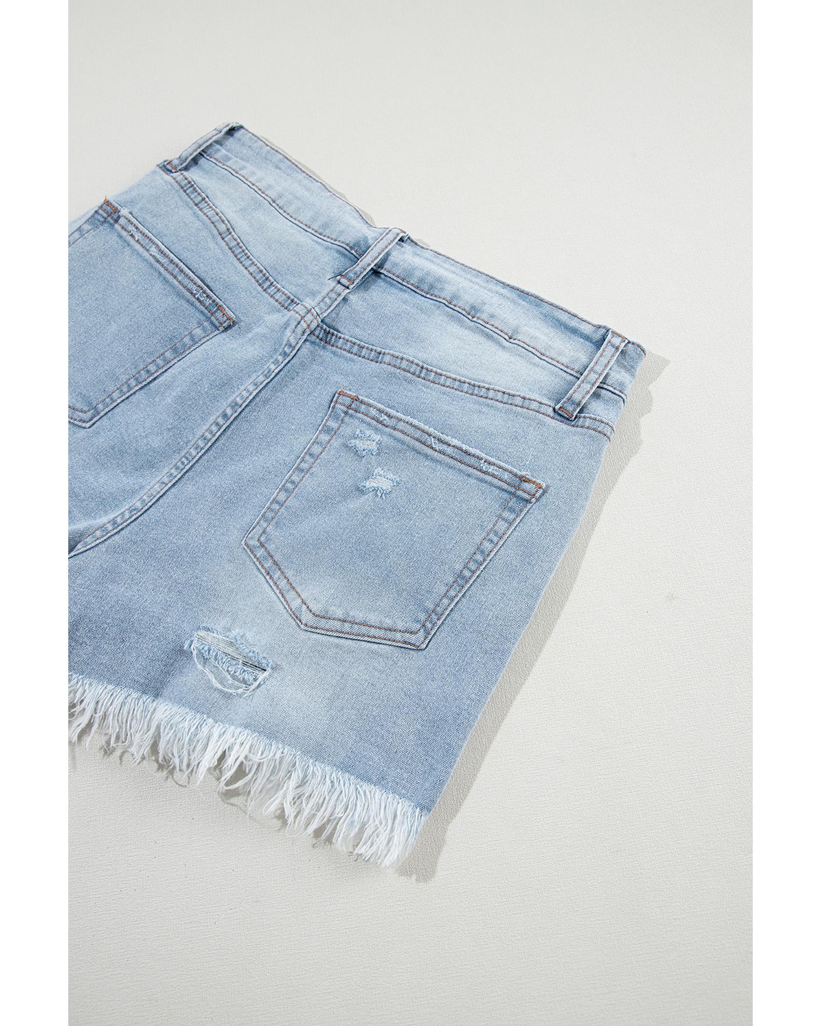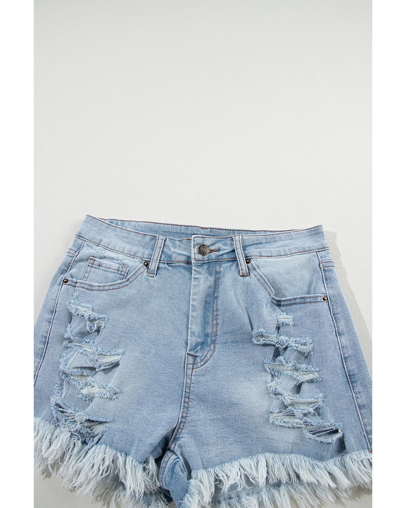 Light Blue Distressed Ripped Raw Hem High Waist Denim Shorts – 14 US