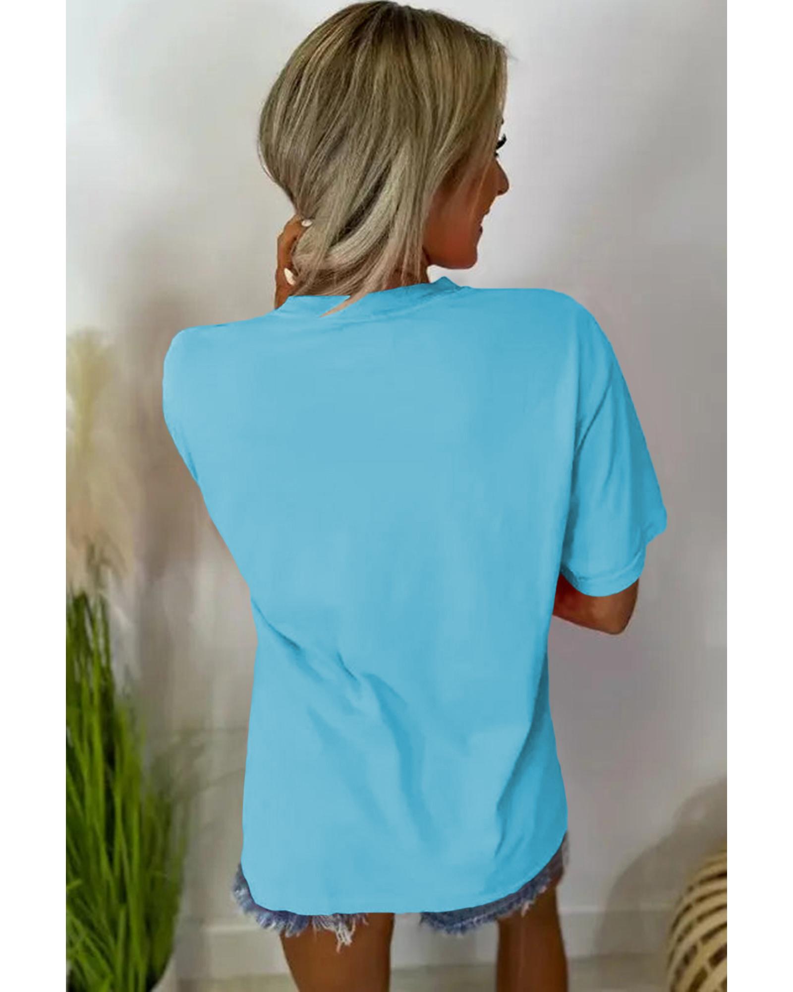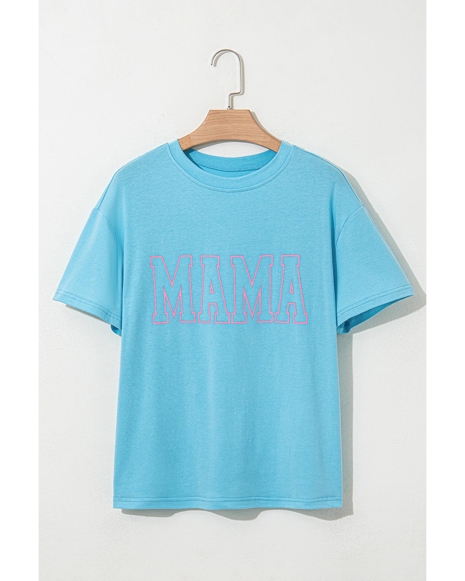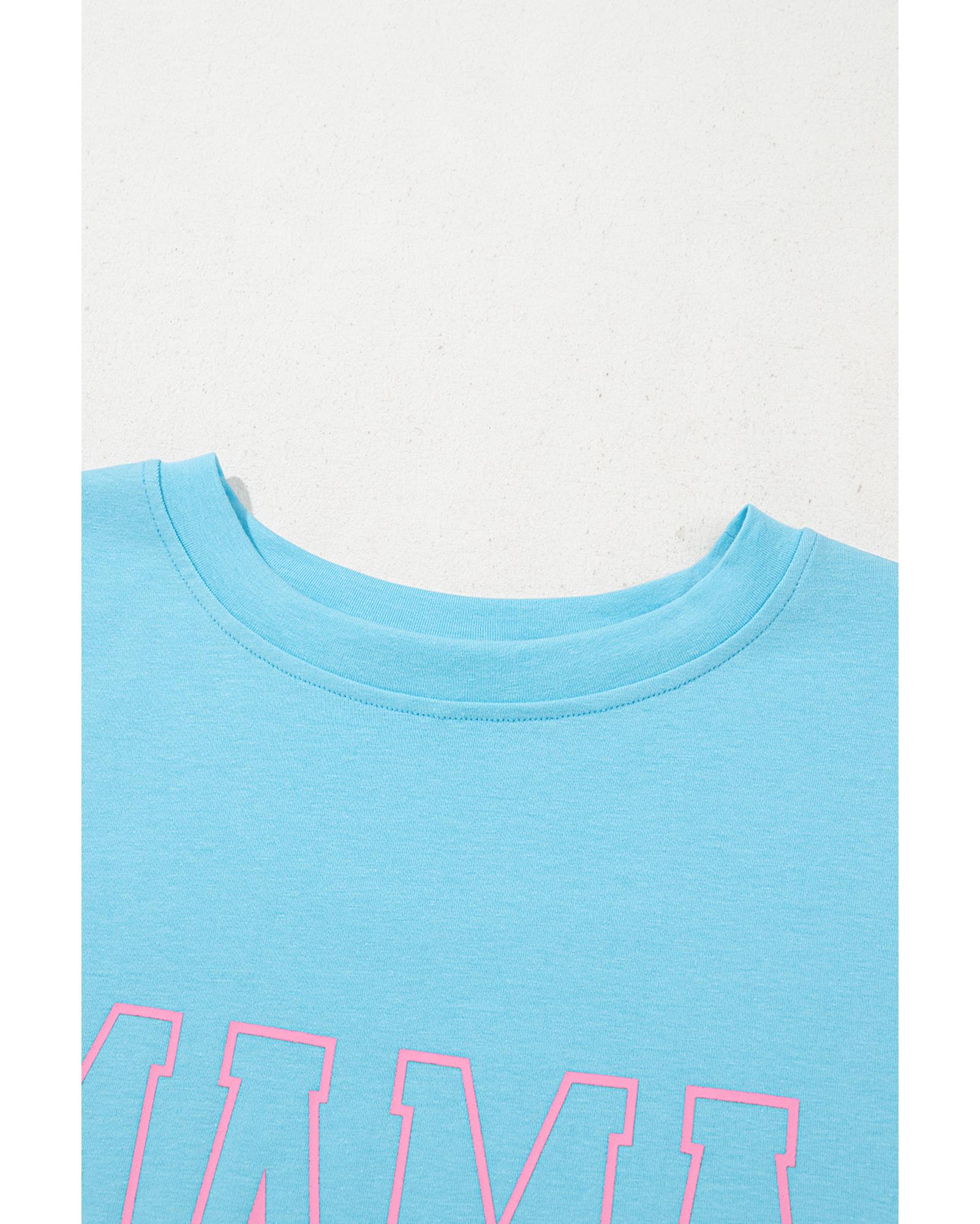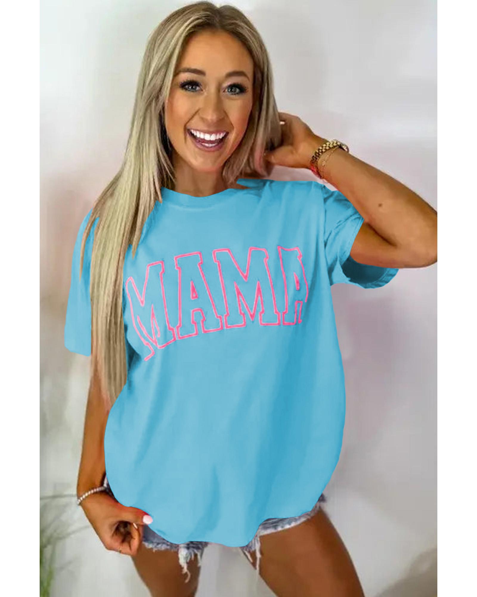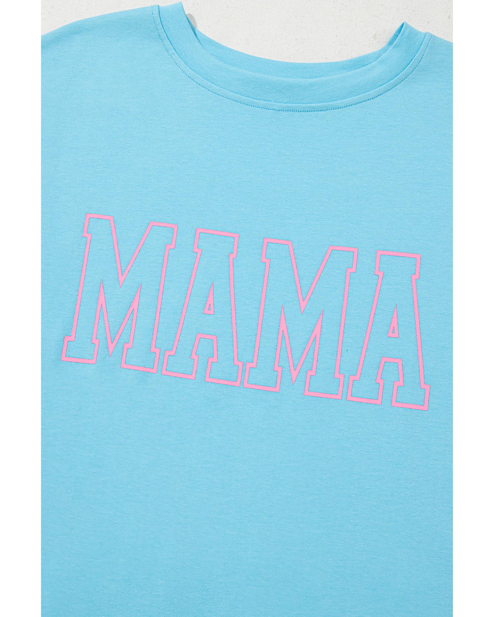 • Light Blue MAMA Letter Graphic Neon T Shirt