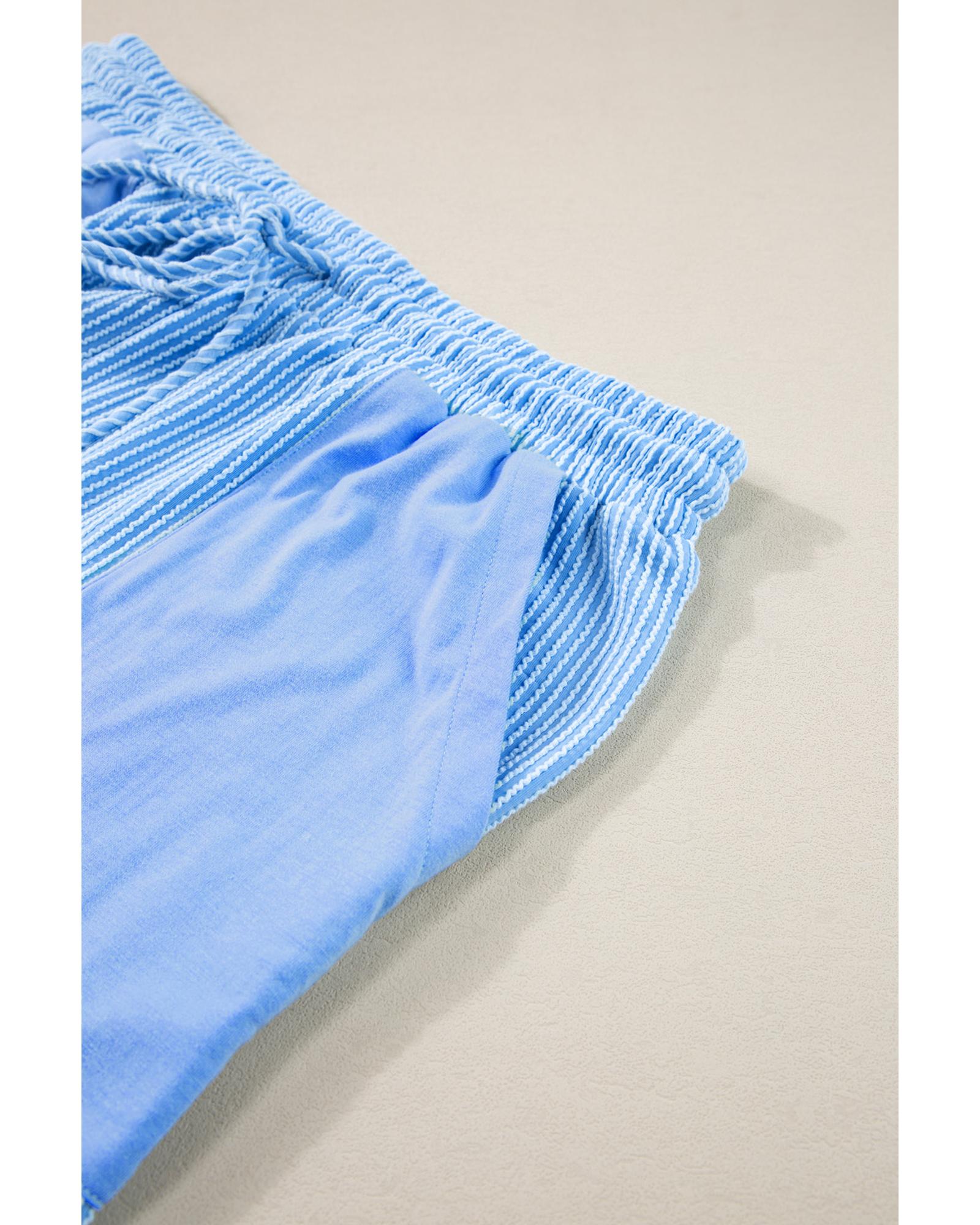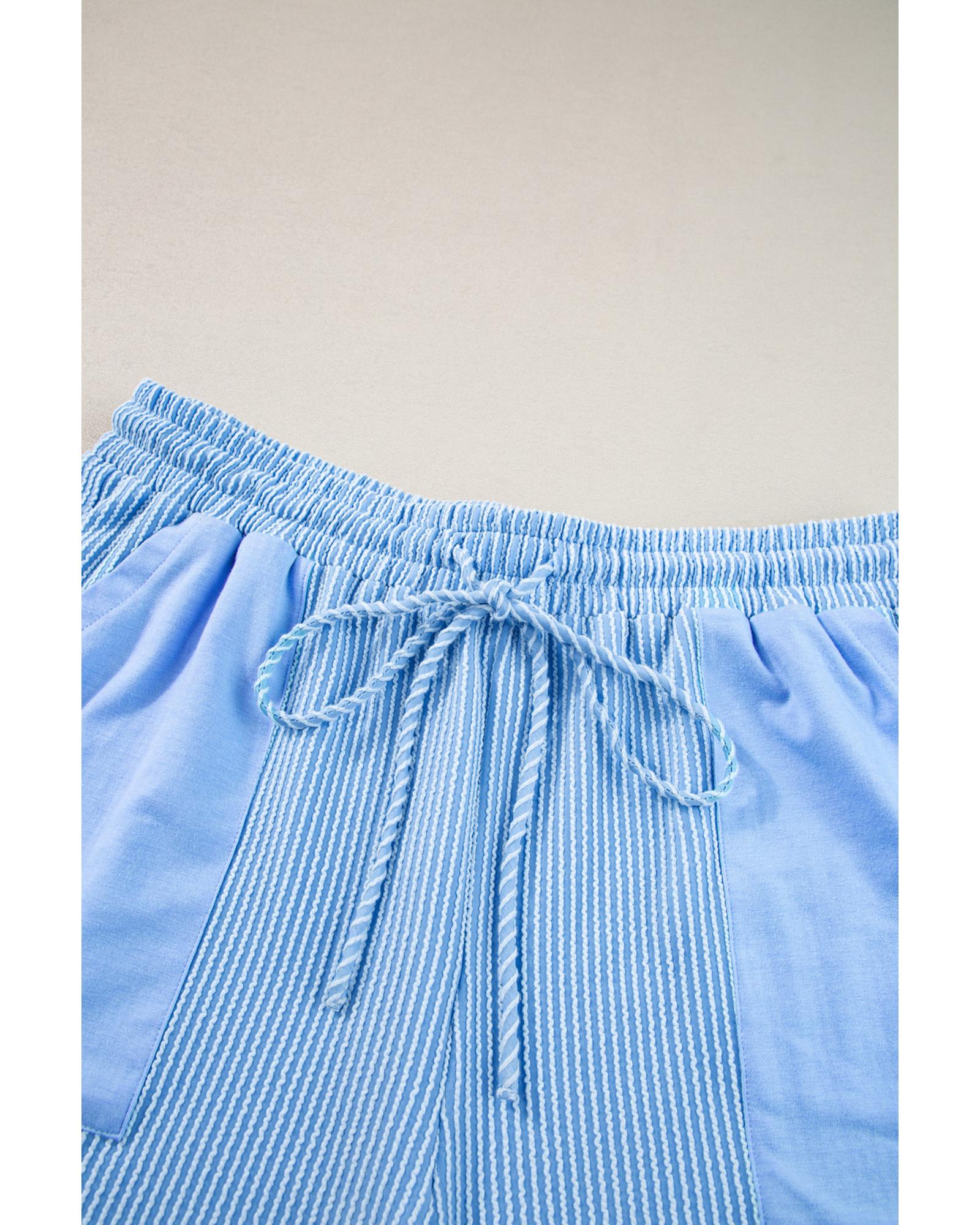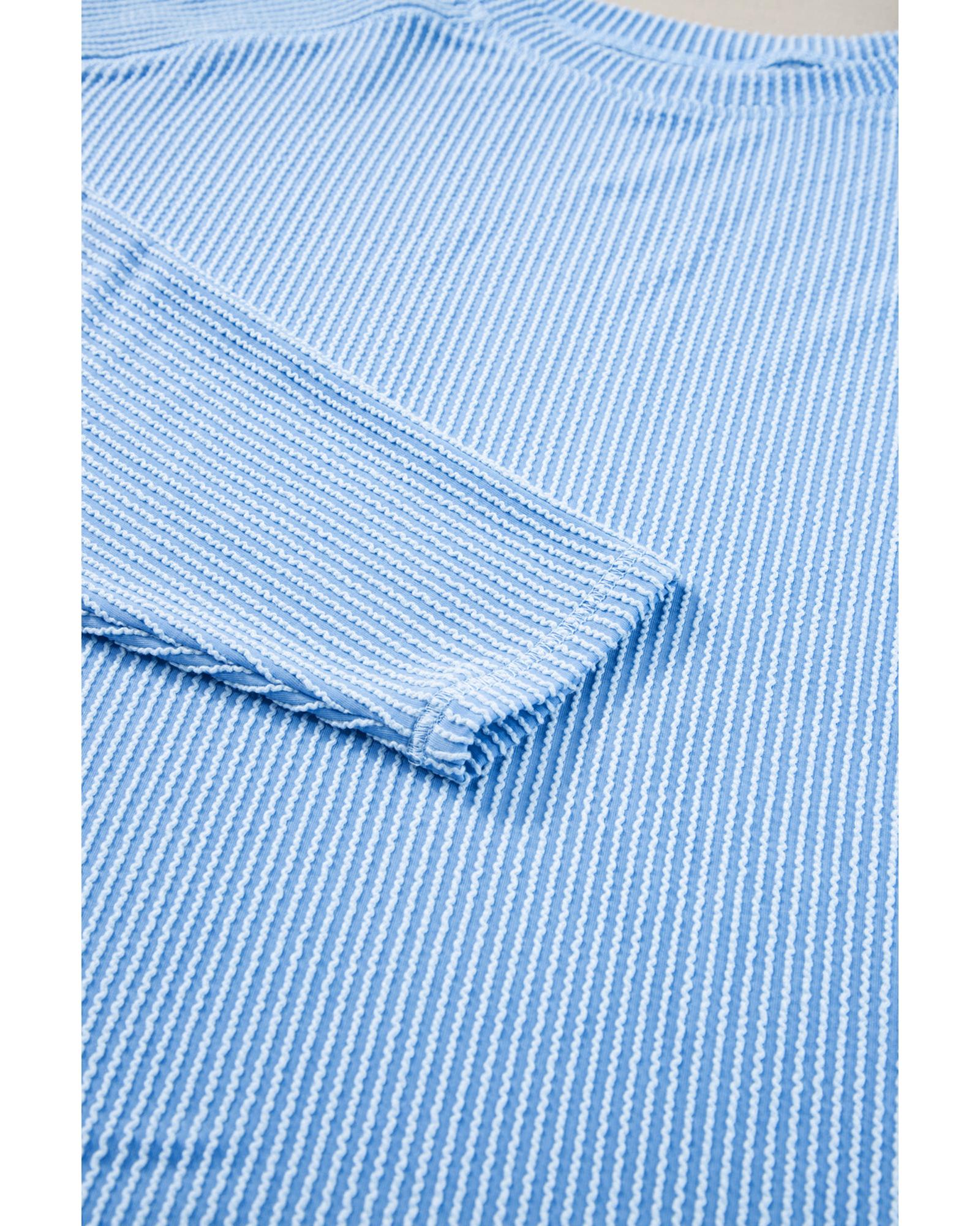 Light Blue Plus Size Ribbed Long Sleeve Top and Drawstring Shorts Set – 2X