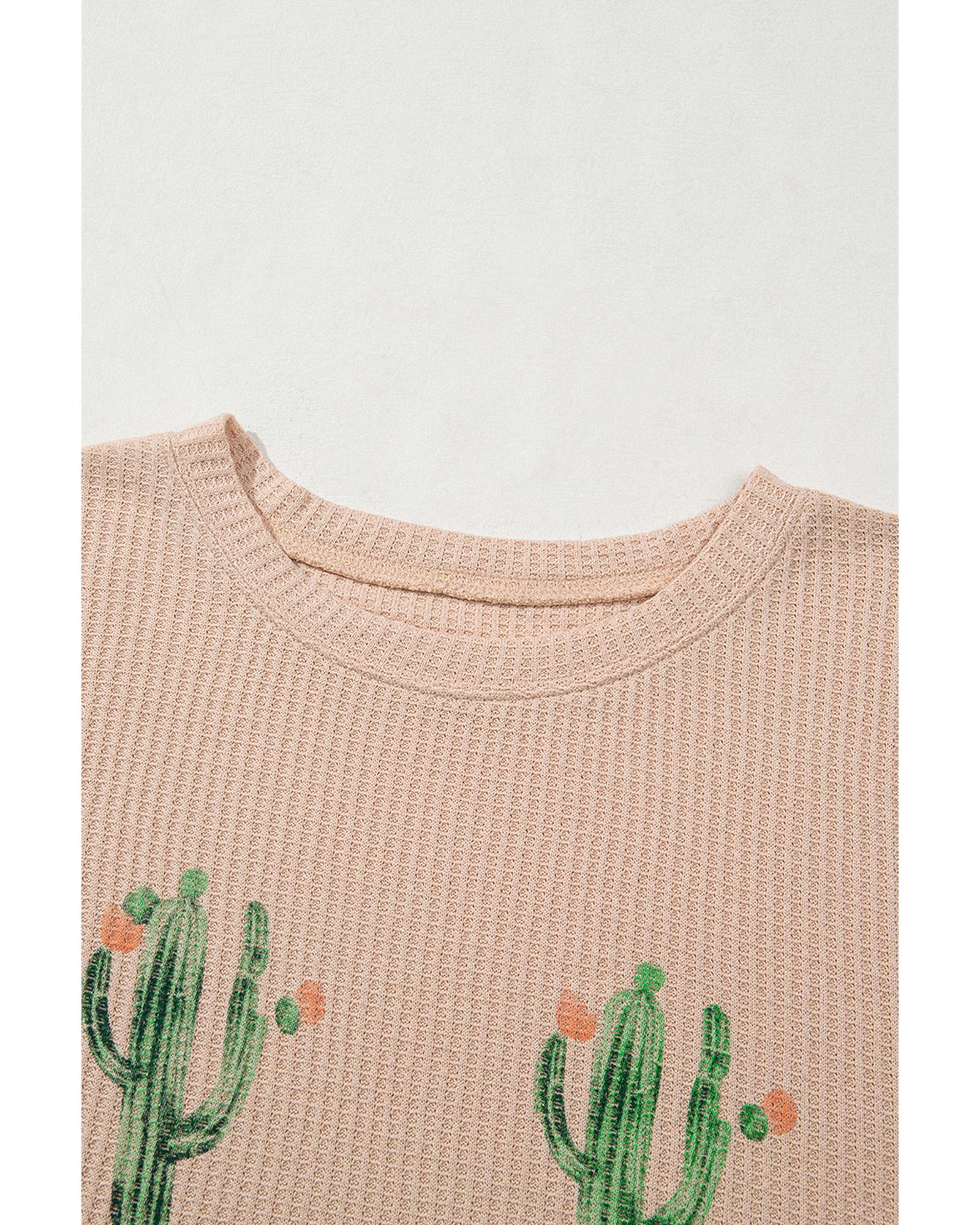 - Light French Beige Cactus Forest Waffle Half Sleeve Tee Short Set