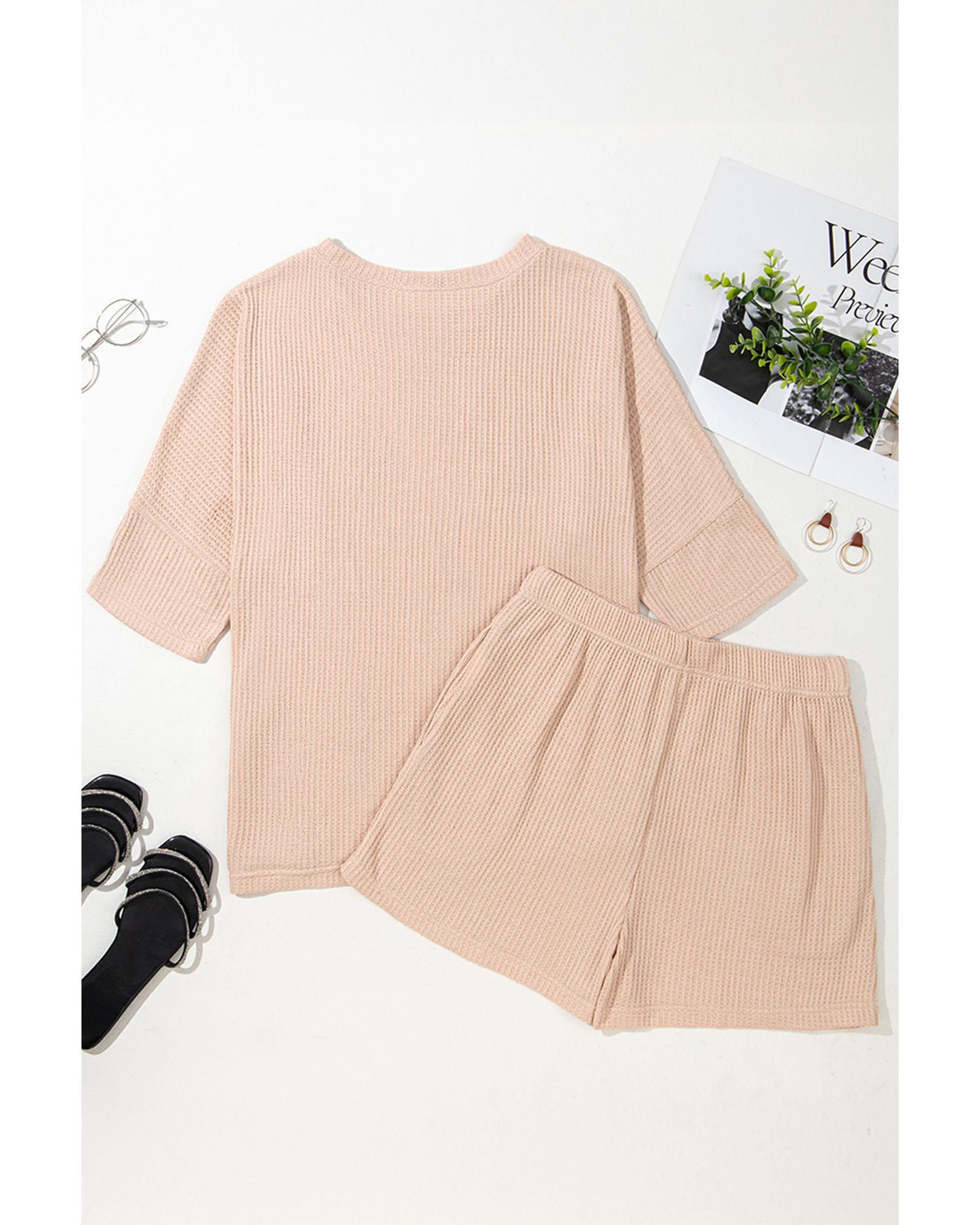 • Light French Beige Cactus Forest Waffle Half Sleeve Tee Short Set